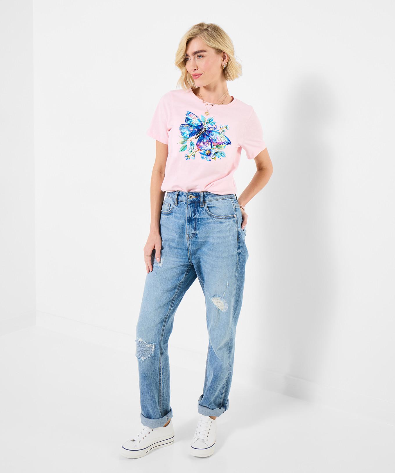 Dieses T-Shirt mit Schmetterlingsmotiv wertet Ihre Alltagsoutfits für den Sommer auf.