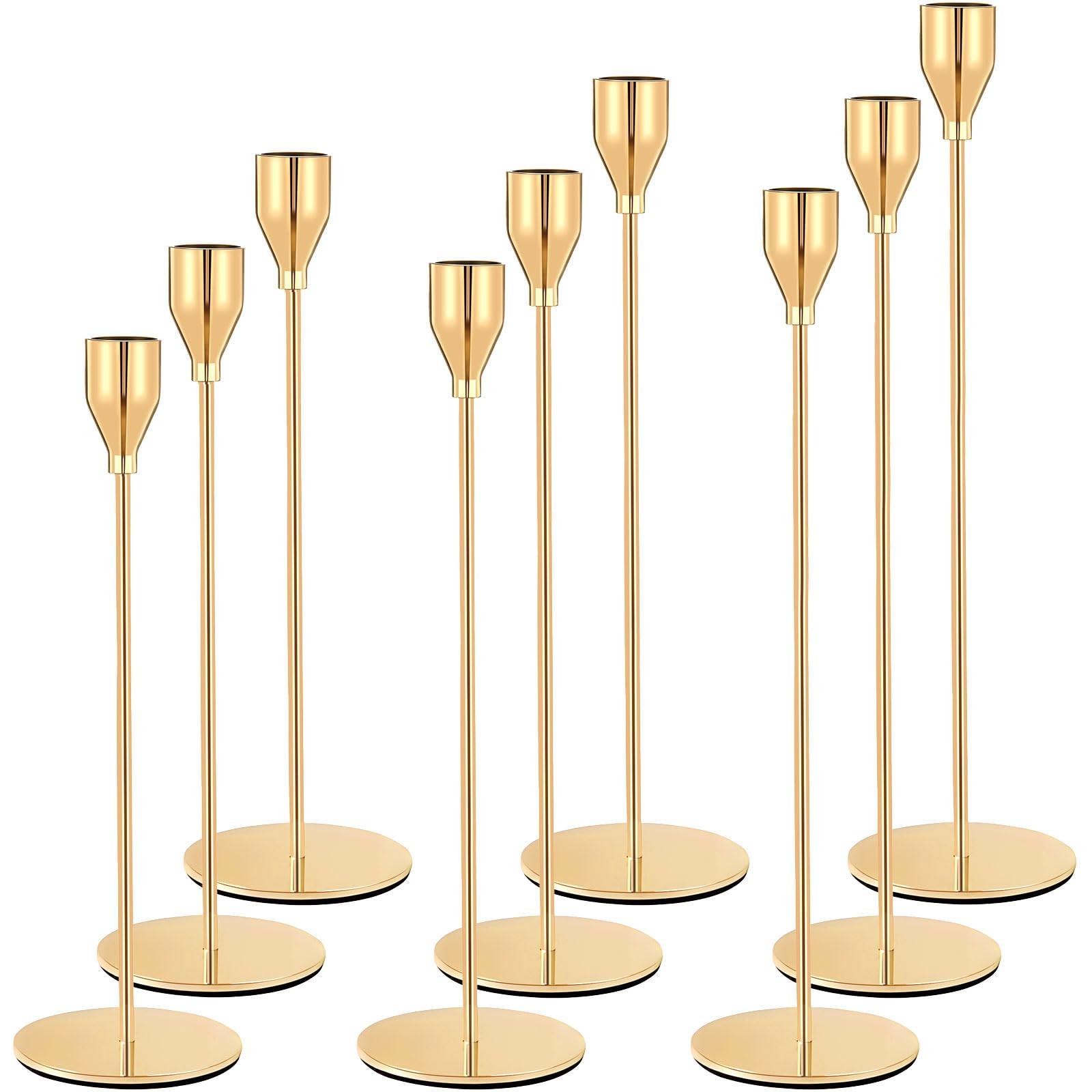 Gold Kerzenständer Die Basis ist 8cm breit mit 3 verschiedenen Höhen, jede Größe hat 3 Kerzenhalter, geeignet für 3/4 Zoll oder 7/8 Zoll Kerzen und Spitzkerzen. Größe 23/28/33cm. Das Produkt enthält keine Kerzen. Taper Candle Holders hat einen schlanken einköpfigen Kerzenhalter, diskret und modern, Kerzenleuchter in drei Teile.Nur zwei Schritte, um die Installation abzuschließen. Drehen Sie das Gehäuse und im Uhrzeigersinn zu verbinden. Kerzenhalter sind einfach und elegant,die jedes Haus Dekor für Haus Erwärmung passt,Geeignet für eine Einweihungsparty oder Hochzeitsgeschenk.Und für die meisten Gelegenheiten geeignet: Hotels, Restaurants, Kirchen, Esszimmer, Wohnzimmer, Salon, Arbeitszimmer und bar.Give Sie eine subtile und elegante Atmosphäre, die eine romantische Der Kerzenhalter ist aus Schmiedeeisen mit High-End-Galvanik-Technologie, die Oberfläche ist glatt und flach, um es glänzend langlebig und rostfrei zu machen.Erhältlich in 9-teiligen Set Mengen. Zur gleichen Zeit bieten wir qualitativ hochwertige After-Sales-Service. Bitte kaufen Sie mit Vertrauen! * Kerzenständer in verschiedenen Höhen, die sehr geeignet für verschiedene Situationen ist.Stellen Sie diese Kerzenständer auf dem Esstisch oder über dem Kamin, um eine warme und Atmosphäre zu schaffen und die Schönheit Ihrer Einrichtung zu verbessern. Boden mit Anti-Rutsch-Matte kann die Reibung reduzieren, um ein Umkippen zu verhindern.
