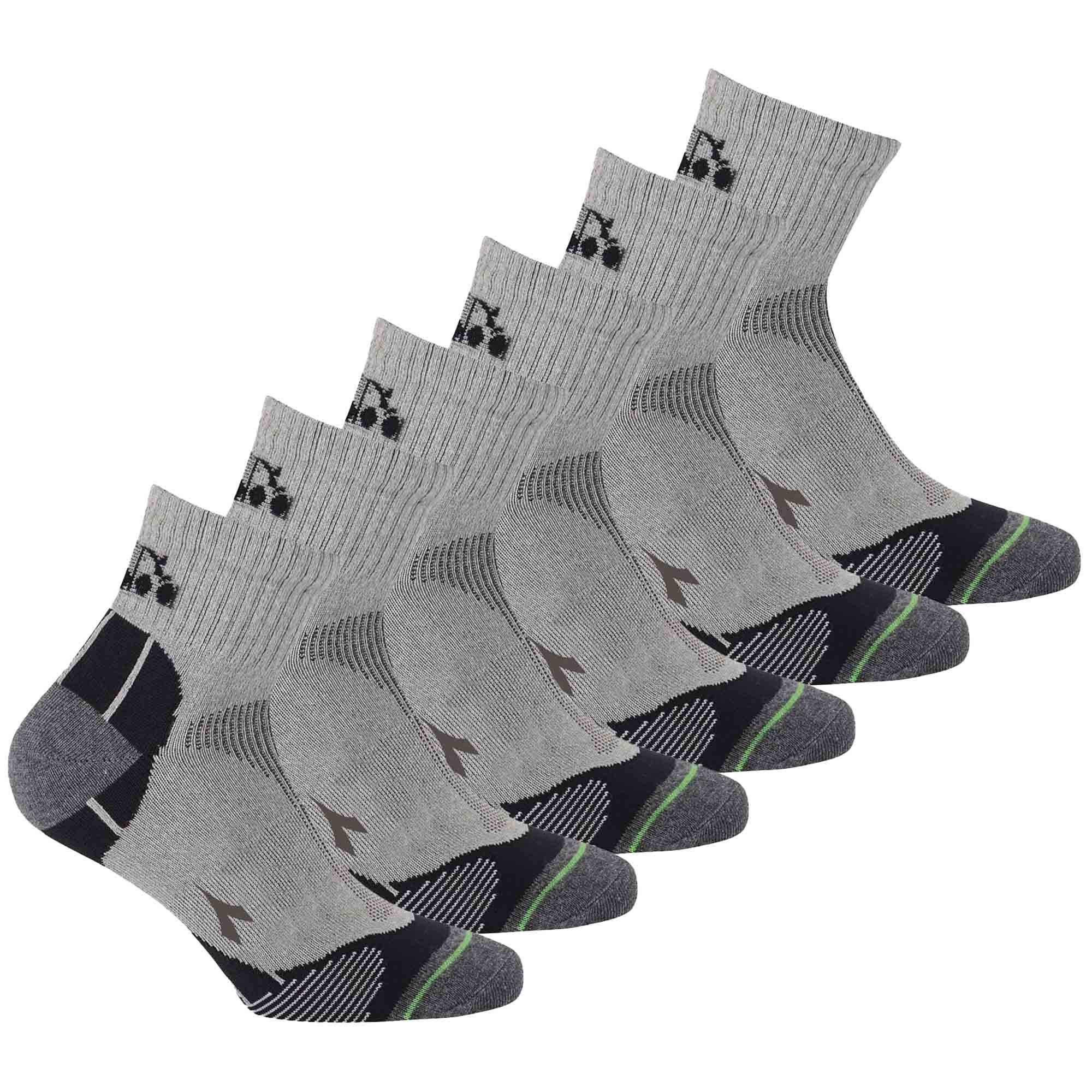 Unisex Sportsocken für Damen und Herren von der Marke Diadora. Im praktischen 6er Pack. Einfarbiges Modell mit Muster an der Ferse und an der Spitze. Angenehmer Tragekomfort.