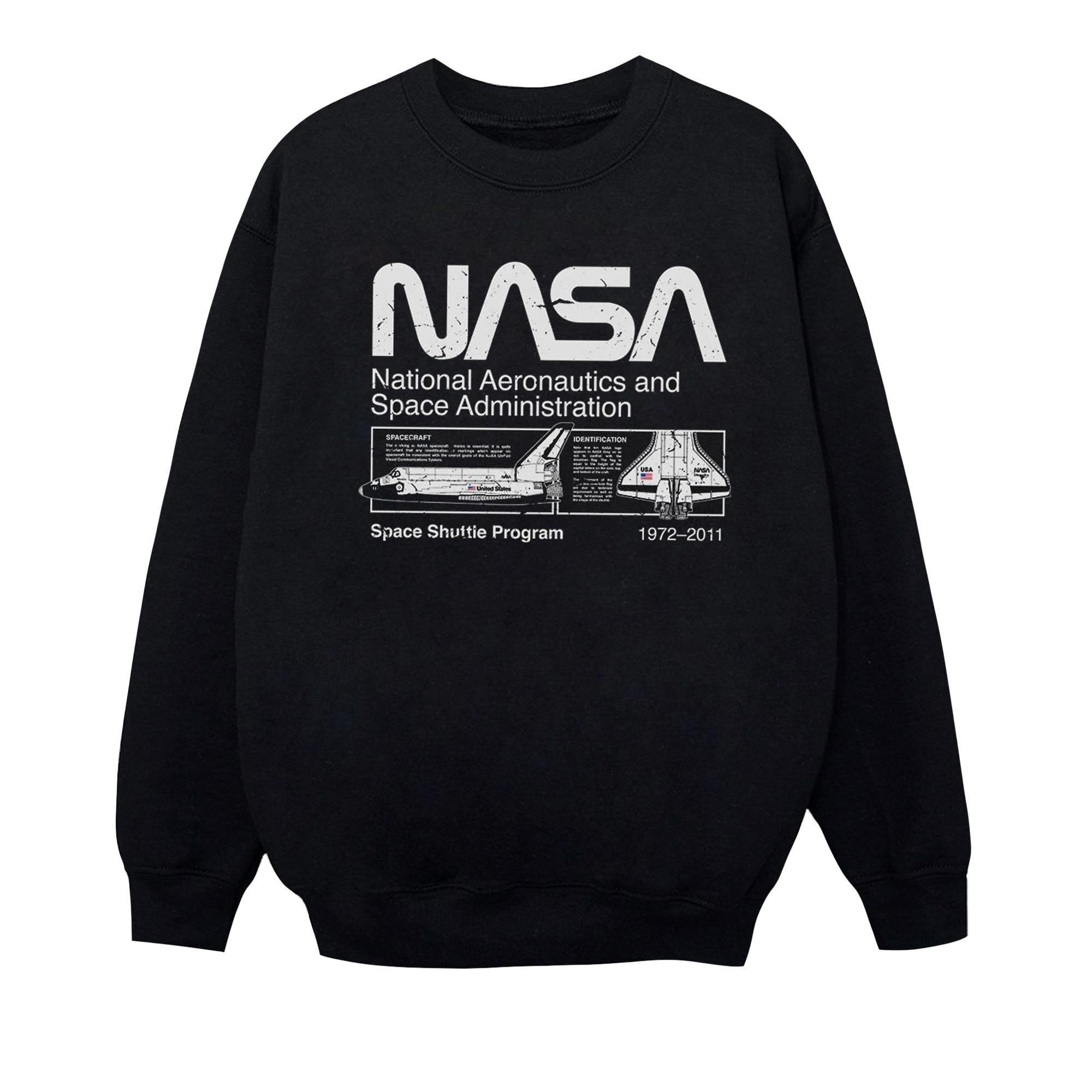 Gewebetechnik: Schwer. Materialzusammensetzung (%): 50% Baumwolle, 50% Polyester. Gewebe: Single Jersey. Design: Logo, Raumfähre, Aufschrift. GSM (Gramm pro Quadratmeter): 280. Zum Überziehen. Mit Band im Nacken. 100% offiziell lizenziert. Rundhalsausschnitt, Elastisch. Bündchen: Elastisch. Saum: Elastisch. Langärmlig.