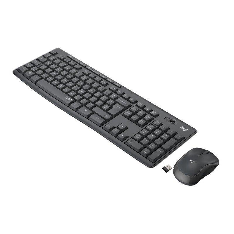 Logitech MK295 Silent Wireless Combo. Formfaktor der Tastatur: Standard. Tastaturstil: Gerade. Schnittstelle des Geräts: Wireless RF, Tastaturlayout: QWERTY, Empfohlene Nutzung: Büro. Farbe des Produkts: Schwarz. Inklusive Maus