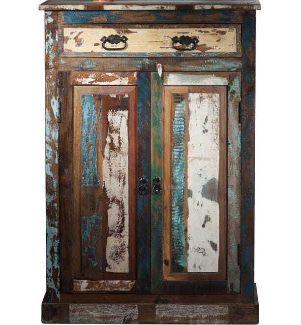 Vintage Colored Agra ? auf dieser Trauminsel im tropisch warmen Indischen Ozean sahen wir erstmals Möbel, die aus alten Fischerbooten gefertigt wurden. Und bei fast 4 Millionen Einwohnern auf einer Insel gibt es verdammt viele Fischerboote? Diese werden traditionell in den verschiedensten Farben gestrichen, Farben nämlich, wie man sie auf Bali immer wieder antrifft: bunte tropische Blu_tenbäume wie Frangipani, Bougainvillea oder Hibiskus, Gru_ntöne wie bei den Reisterrassen von Ubud, blau wie der Himmel, aber eben auch schwarz wie erkaltete Lava der reichlich vorhandenen Vulkane. All diese Farben finden sich in den Möbeln dieser Serie wieder. Durch geschicktes ?Auge? wird das Holz so ?gelegt?, dass es wieder ein harmonisches Bild ergibt. Die Kombination aus starken Gebrauchsspuren mit dem auf ?alt? getrimmten Metall ergibt ein ?factory-design? der besonderen Art.