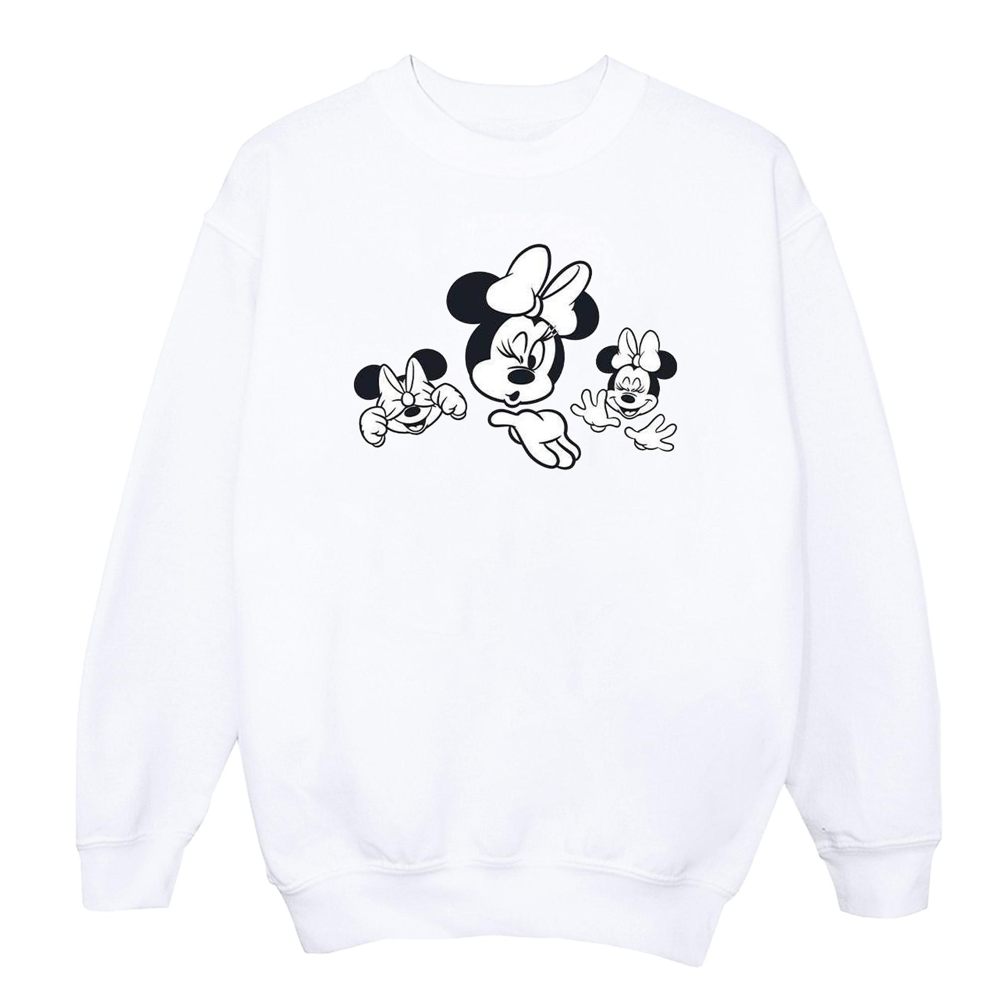 Dieses Rundhals-Sweatshirt zeigt einen verspielten Grafikdruck von Minnie Maus und zwei kleineren Minnie Maus-Charakteren auf der Vorderseite. Das klassische Design umfasst einen gerippten Rundhalsausschnitt, Bündchen und Saum für eine bequeme reguläre Passform.