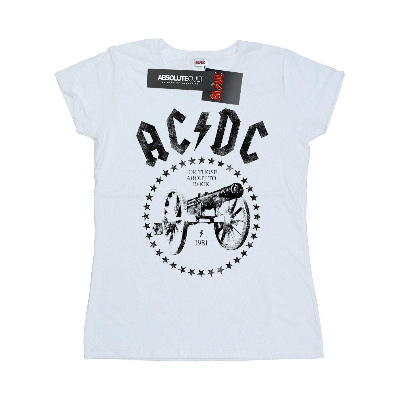 Dieses T-Shirt verfügt über einen klassischen Rundhalsausschnitt und kurze Ärmel und bietet eine bequeme und vielseitige Passform. Die Vorderseite des Shirts zeigt einen auffälligen Grafikdruck, einschliesslich des ikonischen ACDC-Logos und eines Kanonen-Designs, umgeben von Sternen mit dem Text „FOR THOSE ABOUT TO ROCK“ und „1981“. Dieses Design ist eine Hommage an die legendäre Rockband und ihr klassisches Album.