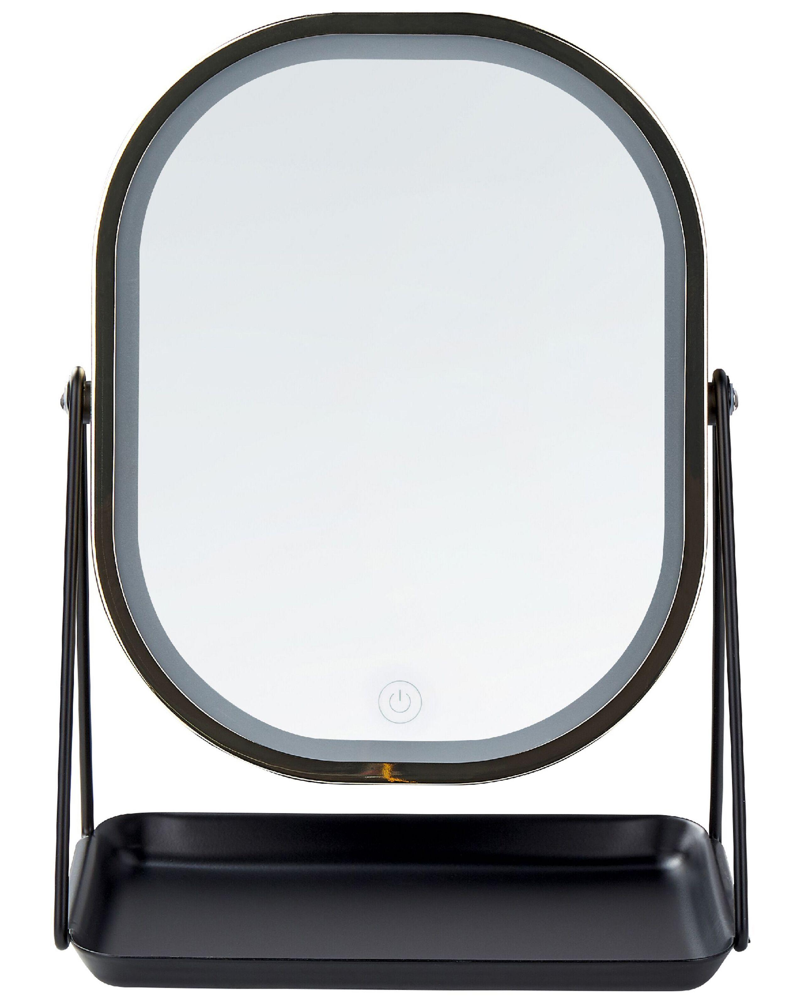 Dekorativer Tischspiegel mit LED-Beleuchtung. Mit diesem schönen und funktionellen Tischspiegel werden Sie mehr sehen. Mit dem eingebauten LED-Licht, das in drei verschiedenen Farben erhältlich ist, können Sie sich zu jeder Tageszeit perfekt schminken. Für eine bequeme Nutzung wird das LED-Licht mit Batterien betrieben, sodass Sie den Spiegel an jedem beliebigen Ort verwenden können, ob im Schlafzimmer, im Badezimmer oder im Flur. Die Ablagefläche bietet zusätzlichen Platz für Schmuck, Haarschmuck und vieles mehr.