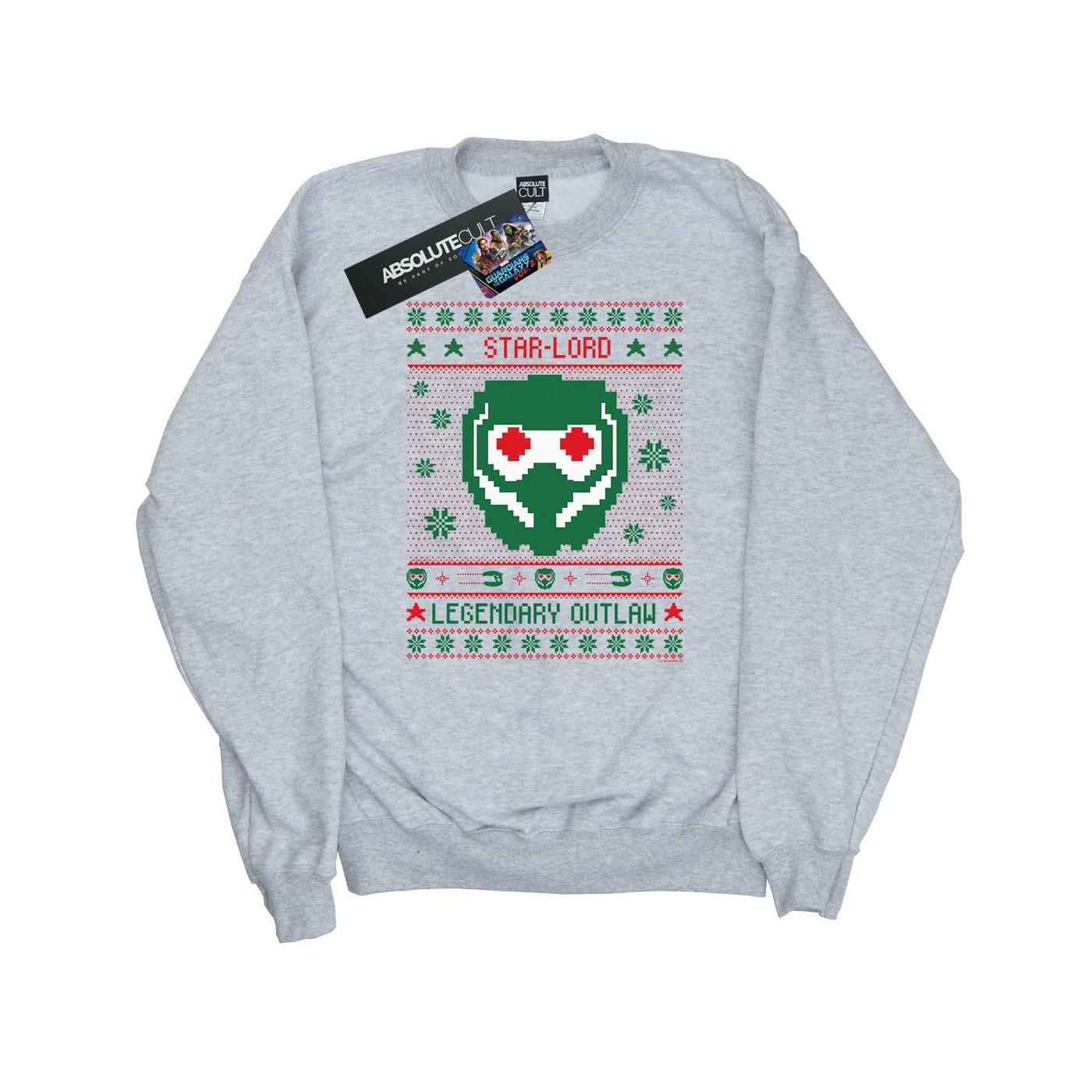 Dieses Guardians Of The Galaxy Vol. 2 Sweatshirt zeigt ein festliches "Ugly Sweater"-Design mit Star-Lords Maske und dem Text "STAR-LORD LEGENDARY OUTLAW". Es ist eine bequeme und stilvolle Ergänzung für die Garderobe jedes Fans.