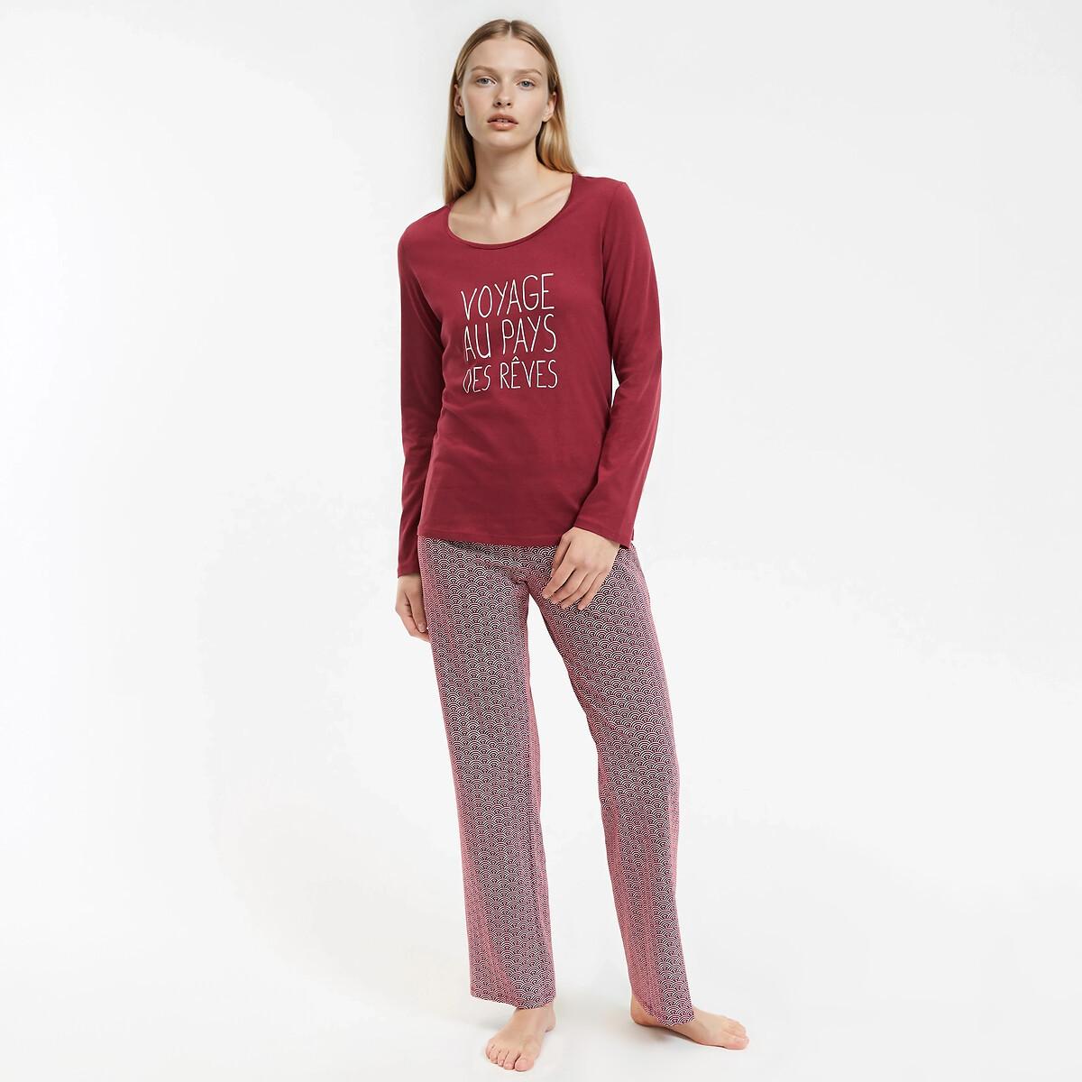 Dieser Langarm-Pyjama aus weichem Baumwoll-Jersey bietet Komfort und eine entspannte Passform für erholsame Nächte. Das Oberteil verfügt über einen Rundhalsausschnitt und lange Ärmel, während die Hose mit einem bequemen elastischen Bund ausgestattet ist.