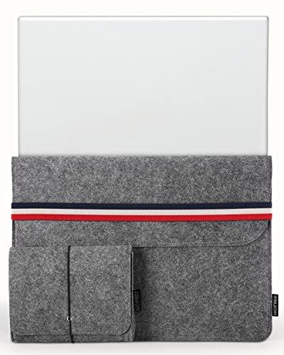 * SCHLANK & TRAGBAR Das Produkt misst 42 x 29,5 x 0,6 cm. Es kann unabhängig in der Hand oder in einer Aktentasche, einem Koffer oder einem Rucksack getragen werden. * WEITERE KOMPATIBILITÄT Passend für das neue 15,6 Zoll MacBook Pro 2018 und MacBook Pro 2016 sowie das Surface Book 2, Dell XPS und andere dünne und leichte 15 Zoll Laptops. * VOLLER SCHUTZ Hochwertiger Filz auf der Außenseite und weiches Wildleder auf der Innenseite. Schützt vor Kratzern und Stößen. Ein eleganter elastischer Riemen und eine Klappe sorgen dafür, dass Ihr Laptop aus der Tasche rutscht und leicht zugänglich ist. * Mehr Stauraum: Laptopfach mit Hauptfach, kleineres Fach und 2 Rückentaschen. Das kleinere Frontfach bietet Platz für ein Tablet, eine Zeitschrift oder einen E-Book-Reader. Zwei Rückentaschen für zwei Mobiltelefone, Kopfhörer oder andere Gegenstände wie eine Brieftasche. * Eine zusätzliche kleine Filztasche (6,7 x 5,1 x 0,6 Zoll) bietet Platz für kleine Gegenstände. Zum Beispiel eine Maus, ein Mobiltelefon, ein Ladegerät, ein USB-Kabel, eine SSD, eine Festplattentasche, Strom für das Mobiltelefon, einen Lippenstift, einen Reisepass, usw. Sie kann auch als Mauspad verwendet werden, wenn die Tasche ein wenig locker sitzt.