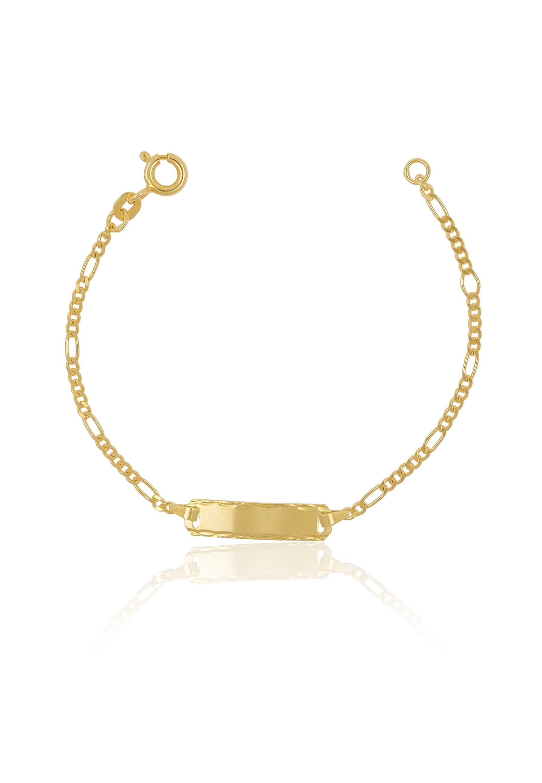 MUAU Schmuck, ID-Bracelet Figaro Gelbgold 585, Schild diamantiert 1.8mm, 14cm
