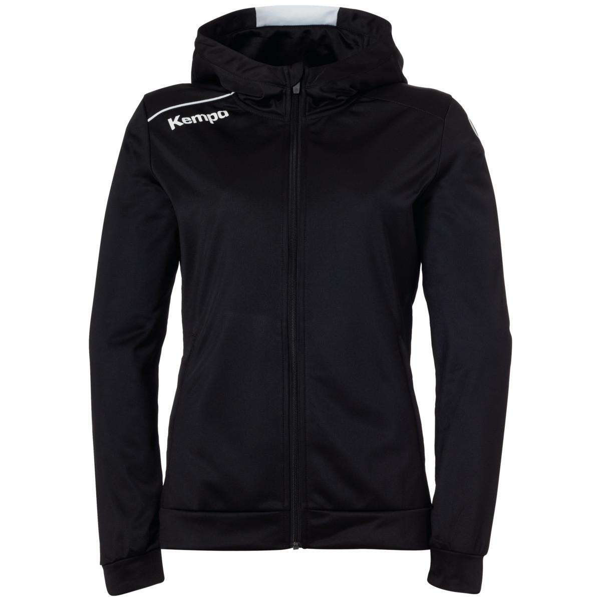 farbiger Einsatz an der Kapuze Namensschild an der Innenseite des Kragens farbiger Einsatz an der SchulternahtDamenschnittTaschen mit Reißverschluss elastische Drucke Kempa und K-Label 2face dry Technologie