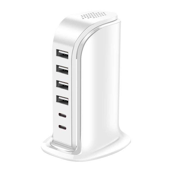 USB/ USB-C Ladestation für Smartphones und Tablets von Bigben. Verfügt über 4x USB Anschlüssen und 2 USB-C Anschlüssen mit Power Delivery. Gesamtleistung von 40W. Ultrakompaktes Design: Abmessungen: 11.0 x 7.5 x 13.0cm und Gewicht: 320g.