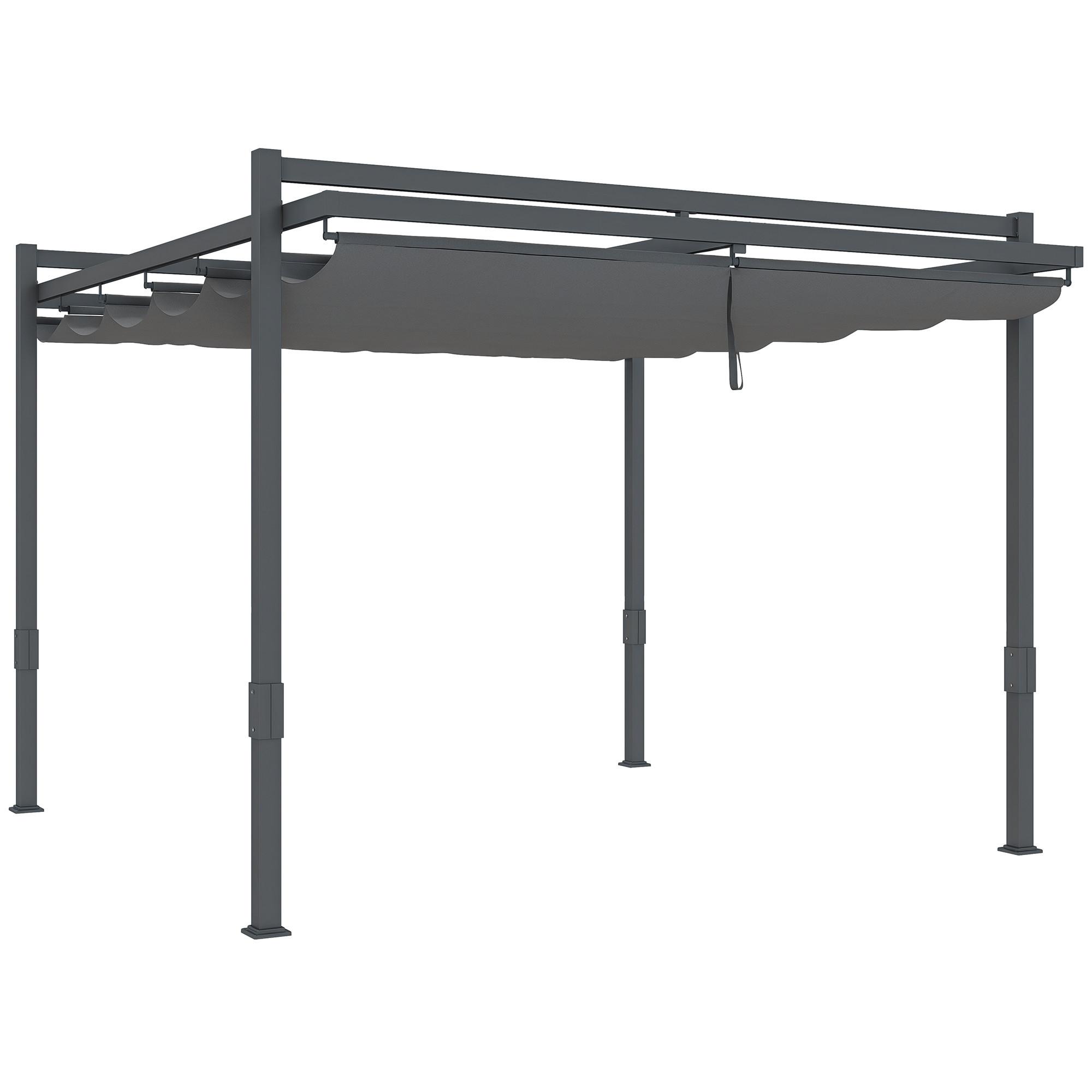 Verwandeln Sie Ihren Garten mit der Outsunny freistehenden Terrassenüberdachung in eine friedvolle Oase. Das verschiebbare Vordach der Outdoor-Pergola bietet flexiblen Schatten und UPF50+ Schutz gegen UV-Strahlen. Mit seinem rostfreien Aluminiumgestell vereint dieses Pergola-Set Stil mit Robustheit eine perfekte Bereicherung für jede Gartenlandschaft.