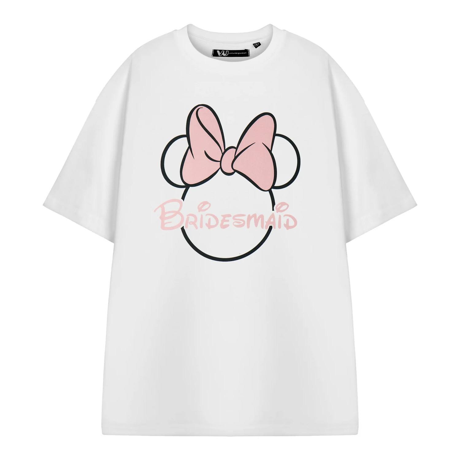 - «Brautjungfer»-Aufdruck mit Schleifen- und Ohrenmotiv