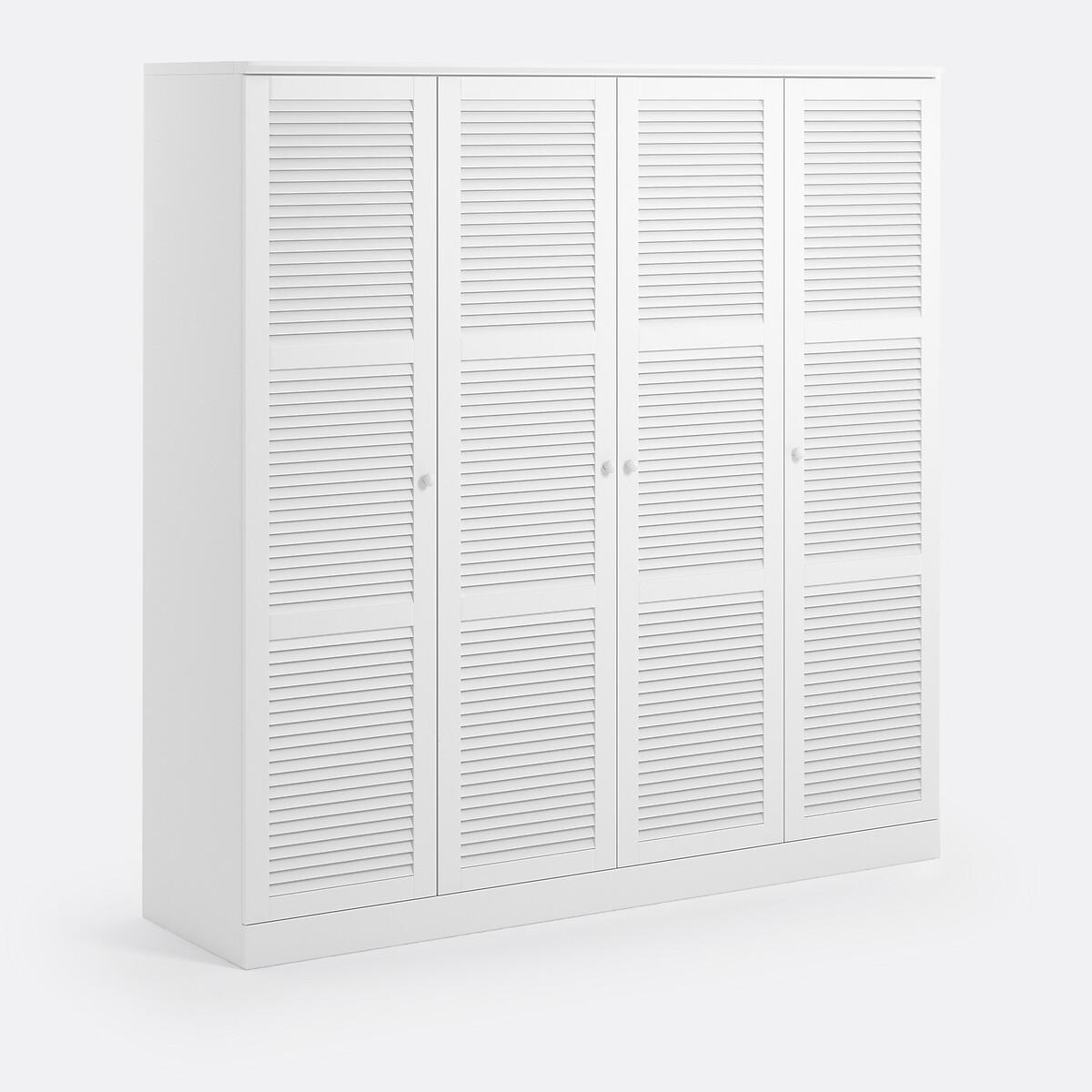 4-türiger Kleiderschrank Mayor. Dieser zeitlos-klassische Schrank hat 4 Türen, 9 Böden und ein Hängeabteil und bietet damit viel Stauraum bei wenig Platzbedarf!