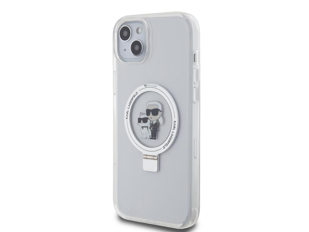 KARL LAGERFELD, Hülle iPhone 15 Stand Karl und Choupette