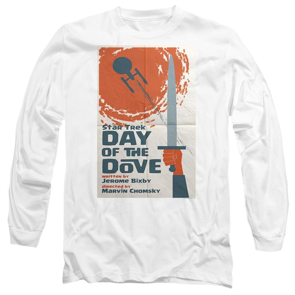 Dieses T-Shirt zeigt einen Grafikdruck, inspiriert von "Day of the Dove", Episode 62 von Star Trek: The Original Series. Das Design präsentiert eine stilisierte Darstellung der USS Enterprise und eines Schwertes vor einem Used-Hintergrund, der die Essenz der klassischen Episode einfängt.