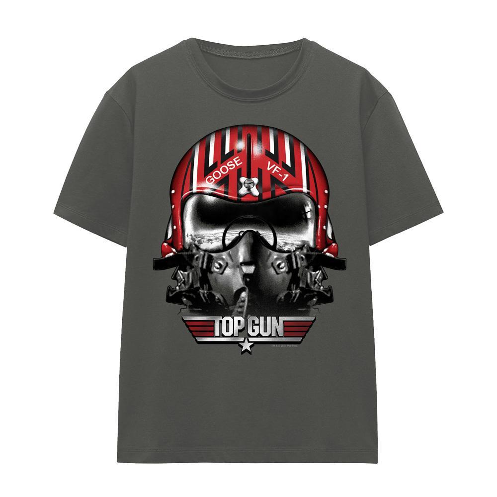 Dieses T-Shirt zeigt einen auffälligen Grafikdruck eines Pilotenhelms mit "GOOSE"- und "VF-1"-Details sowie dem "TOP GUN"-Logo. Es ist für Komfort und Stil konzipiert und eine vielseitige Ergänzung für jede Freizeitgarderobe.