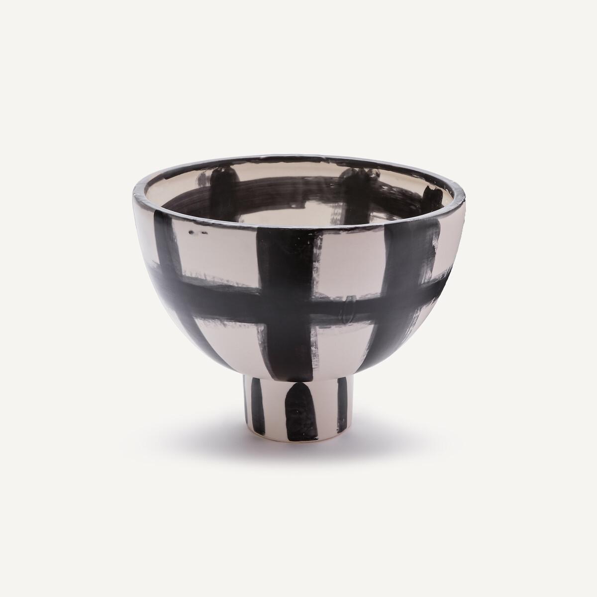 Das glasierte, satinierte Material mit dem angenehmen Griff bildet ein Gegengewicht zum kräftigen Pinselstrichmuster. Dieses auffällige grafische Dekor in Schwarz-Weiss sorgt für eine minimalistische Ästhetik.
