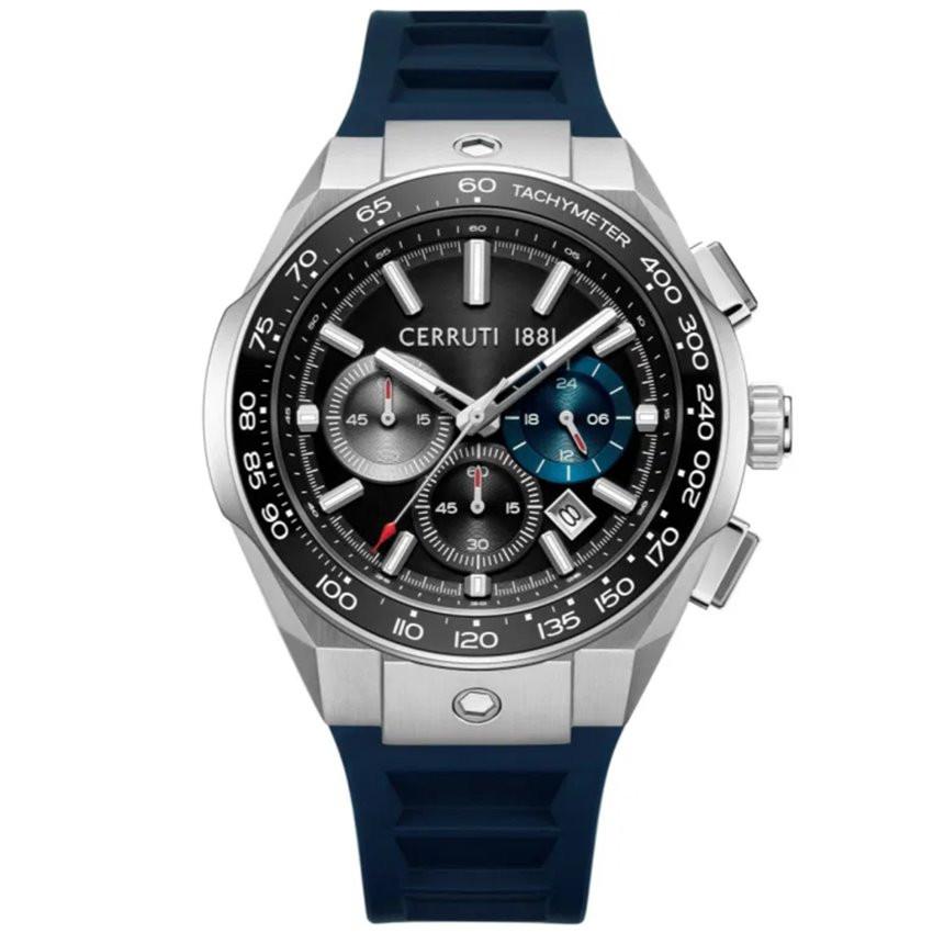 die cerruti 1881 ruscello - ciwgo0050701 ist ein wahres sinnbild moderner raffinesse mit einem sportlichen twist. Diese herrenuhr, gestaltet mit einem silbernen edelstahlgehäuse, einem markanten schwarzen zifferblatt und einem blauen silikonarmband, verbindet präzision und eleganz auf eindrucksvolle weise. Sie ist für männer gemacht, die auf jedes detail achten und ihren stil durch ein vielseitiges accessoire unterstreichen wollen. Das 46-mm-gehäuse aus edelstahl strahlt stärke und modernität aus. Die facettenreiche konstruktion des gehäuses verleiht der uhr eine maskuline, dynamische optik, während die schwarze tachymeter-lünette mit präzisen markierungen funktionale elemente hinzufügt, die das sportliche design unterstreichen. Der mix aus polierten und gebürsteten oberflächen bringt zusätzliche tiefe und hebt die sorgfältig gestalteten details hervor. Das schwarze zifferblatt, ergänzt durch silberne und blaue akzente, verleiht der uhr eine lebendige und kontrastreiche anmutung. Die chronographenfunktionen, dargestellt in drei sorgfältig gestalteten subdials, sind sowohl optisch ansprechend als auch praktisch sie bieten 24-stundenanzeige, stoppfunktion und sekundenzählung, ideal für den alltag oder sportliche aktivitäten. Besonders auffällig ist das rechte subdial in einem metallisch-blauen ton, das dem zifferblatt ein unverwechselbares detail verleiht. Die silberfarbenen indizes und zeiger heben sich klar vom hintergrund ab und garantieren eine exzellente lesbarkeit, unterstützt von einer diskreten datumsanzeige bei der 4-uhr-position. Das blaue silikonarmband fügt eine dynamische, sportliche note hinzu, die die vielseitigkeit der uhr betont. Es ist weich, flexibel und strapazierfähig, perfekt für einen aktiven lebensstil, ohne dabei auf komfort zu verzichten. Die strukturierte oberfläche des bandes sorgt für einen sicheren sitz am handgelenk, während die silberne dornschließe das gesamtbild harmonisch abrundet und die verbindung zum gehäuse elegant hält. Im inneren sorgt das zuverlässige quarzwerk kaliber 05-vd53 für präzise zeitmessung und reibungslose funktionalität. Das mineralglas, das das zifferblatt schützt, bietet eine robuste barriere gegen kratzer und kleinere stöße, sodass die uhr auch bei häufigem gebrauch ihre makellose optik bewahrt. Mit einer wasserdichtigkeit von 50 metern ist die ruscello ebenso praktisch wie stilvoll, ob beim regen, am pool oder bei alltäglichen herausforderungen. Die cerruti 1881 ruscello - ciwgo0050701 ist mehr als eine uhr sie ist ein ausdruck von stil, funktionalität und detailverliebtheit. Ihr design vereint urbane raffinesse mit sportlicher vielseitigkeit und macht sie zu einem idealen begleiter für männer, die sowohl präzision als auch persönlichkeit in ihrem look schätzen. Diese uhr erzählt die geschichte von eleganz und dynamik in einem durchdachten und zeitgemäßen design.