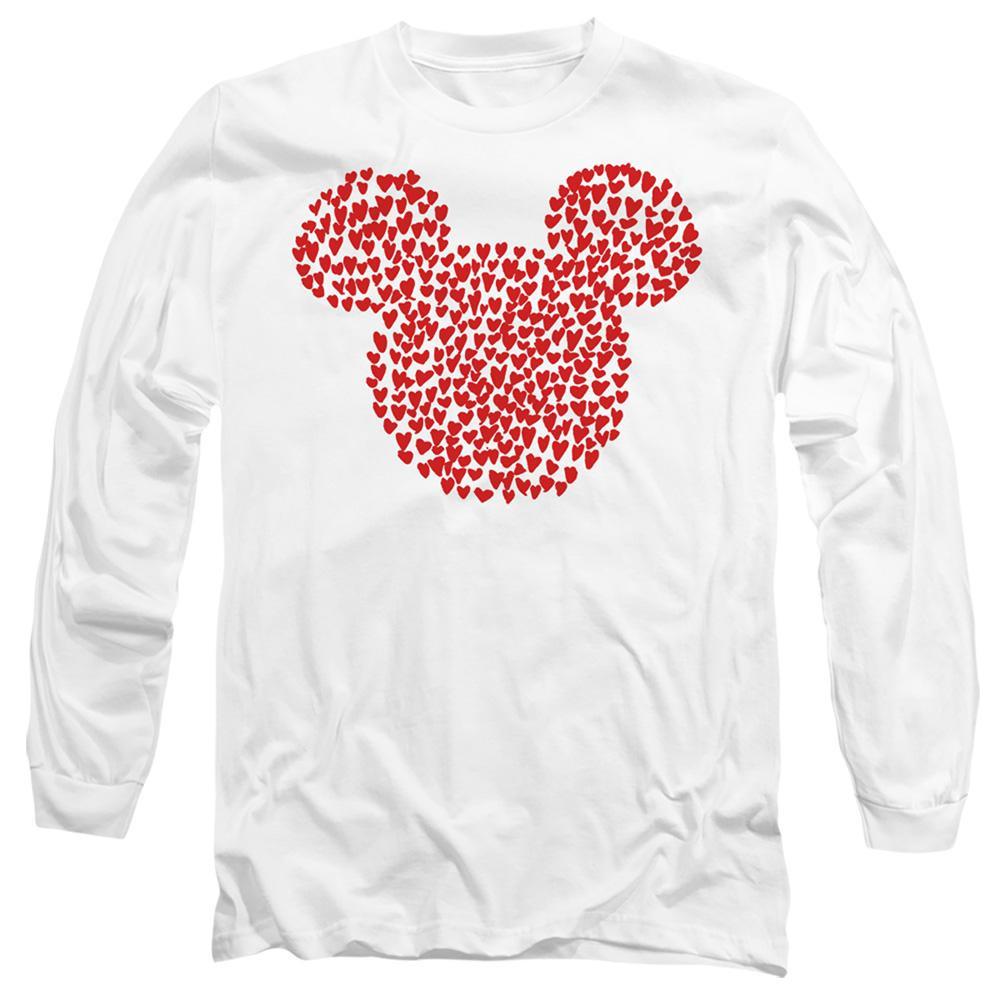 Dieses Langarm-T-Shirt zeigt eine charmante Grafik von Mickeys ikonischer Silhouette, die vollständig aus einer Reihe kleiner roter Herzen besteht. Es ist eine entzückende Wahl für den Valentinstag oder für alle, die einen Hauch von spielerischer Romantik in ihrer Garderobe schätzen.
