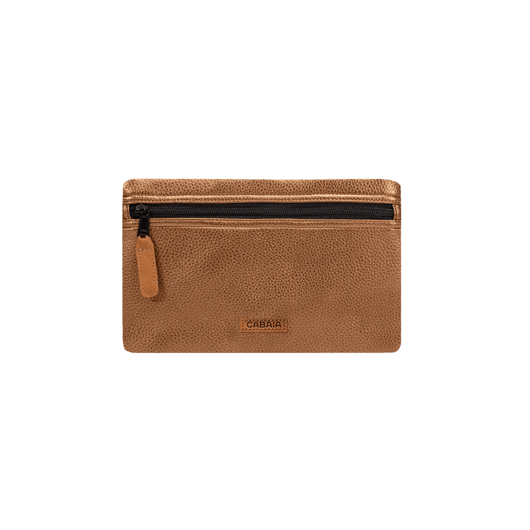 Die El Dorado Clutch ist in Bronze erhältlich, einer hellen und eleganten Farbe, die perfekt zu verschiedenen Stilen passt. Sie ist mit einem schwarzen Lederreißverschluss mit einem kleinen schwarzen Ledergriff zum einfachen Öffnen ausgestattet. Die Prägung des "CABAIA"-Brandings auf der unteren Vorderseite der Clutch verleiht einen Hauch von Raffinesse.