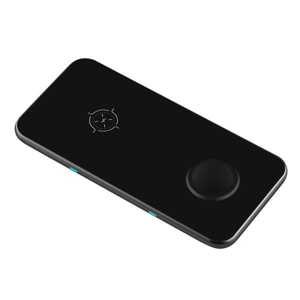Swissten 2-in-1 Ladestation zum gleichzeitigen Aufladen Ihres Smartphones, Ihrer Apple Watch und/oder Ihrer Airpods. Kabelloses QI-Ladegerät mit 10W. Ultrakompaktes Format mit hochwertigem Design. Inklusive Adapter und USB-C Kabel.