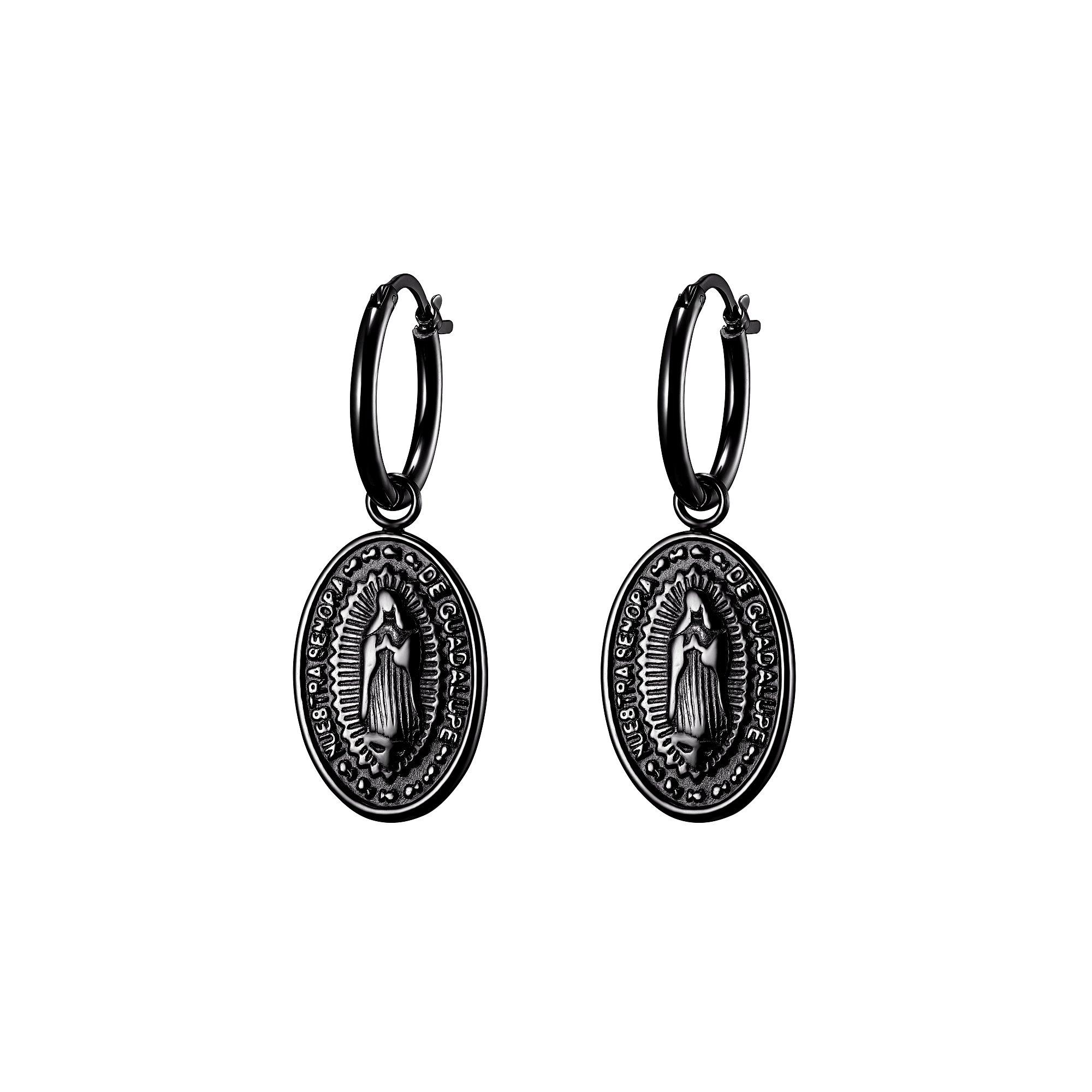 Madonna mia! Mit diesen Ohrringen mit Madonnenabbild schaffst du dir eine geheimnisvolle Aura. Der abnehmbare Einhänger erinnert an eine antike Münze und zieht die Blicke auf sich. Bei konservativen Anlässen kannst du ihn abnehmen und die Creolen ganz schlicht und klassisch tragen. Der Ohrschmuck erinnert an Abenteuer, an versunkene Städte und geheime Schätze, an Urlaub im Süden und natürlich an den Glauben an die heilige Jungfrau Maria.