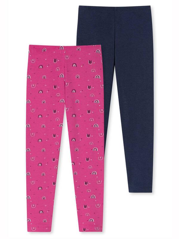 Mädchen Leggings im praktischen Doppelpack, unifarben und mit einem farbigen Allover-Print