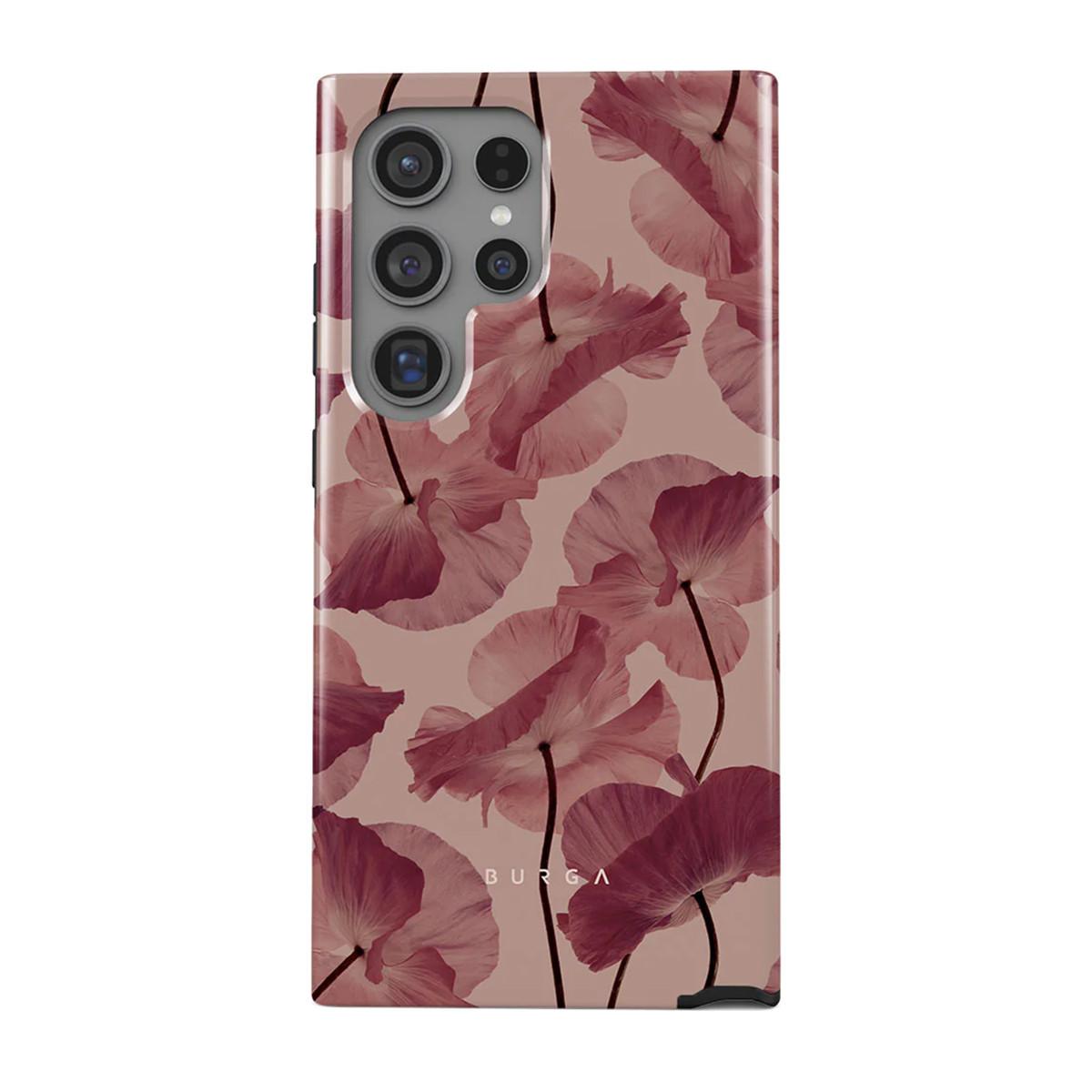 Diese BURGA-Hülle für das Galaxy S24 Ultra, Modell Tender Kiss, besteht aus einer Kombination von zwei Schutzschichten, darunter TPU und Silikon. Sie schützt Ihr Samsung vor Stürzen und Kratzern im Alltag. Die erhöhten Ränder schützen die Kamera und den Bildschirm, wenn Ihr Samsung nach unten gerichtet ist. Die Hülle ist ein echtes Modeaccessoire und hat einen tollen Druck, der nicht verblasst.