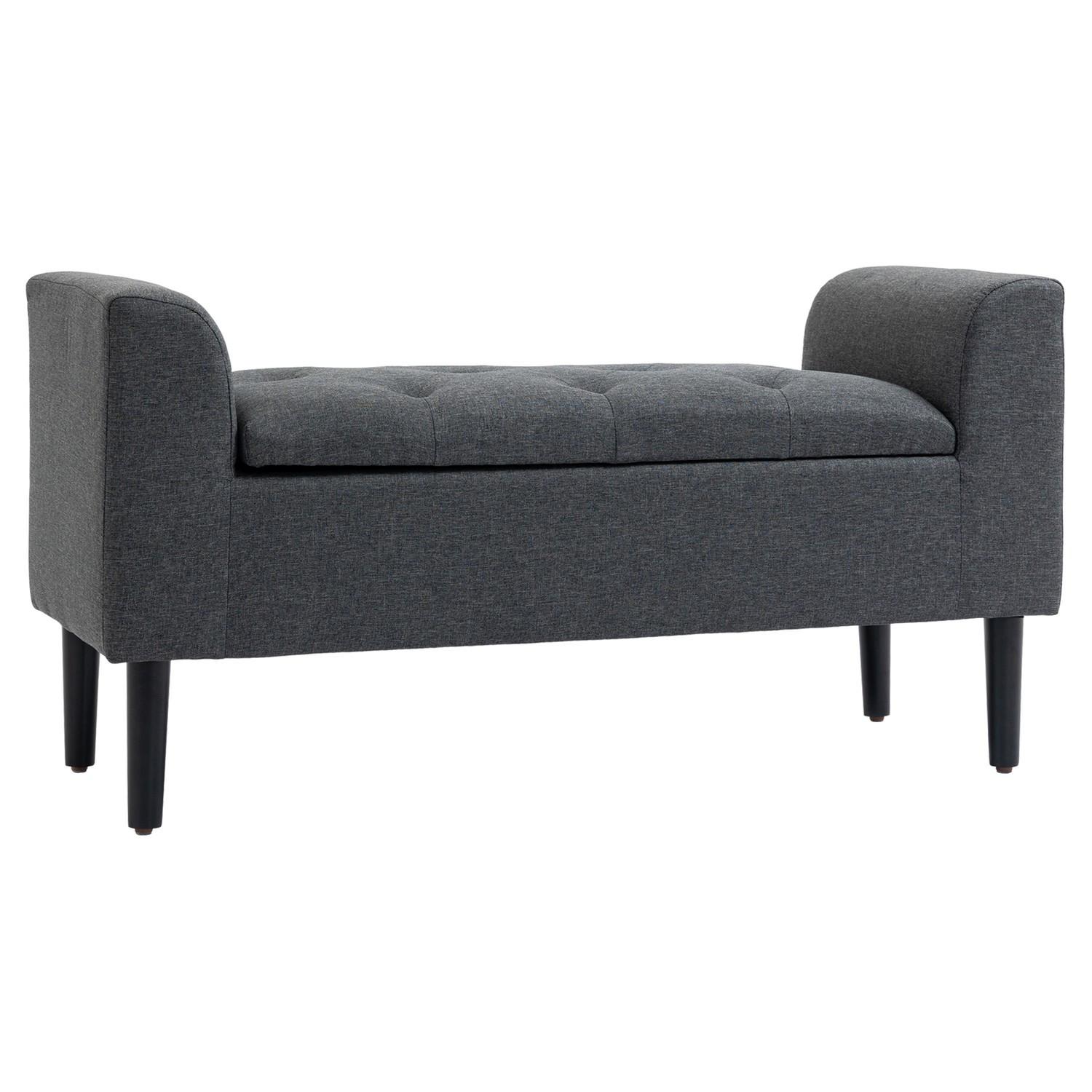 Northio, Sitzbank Mit Stauraum Polsterbank Sitzhocker Sitztruhe Belastbar Bis 130 Kg Leinen-Touch Gummiholz Dunkelgrau 116 X 44 X 58 Cm
