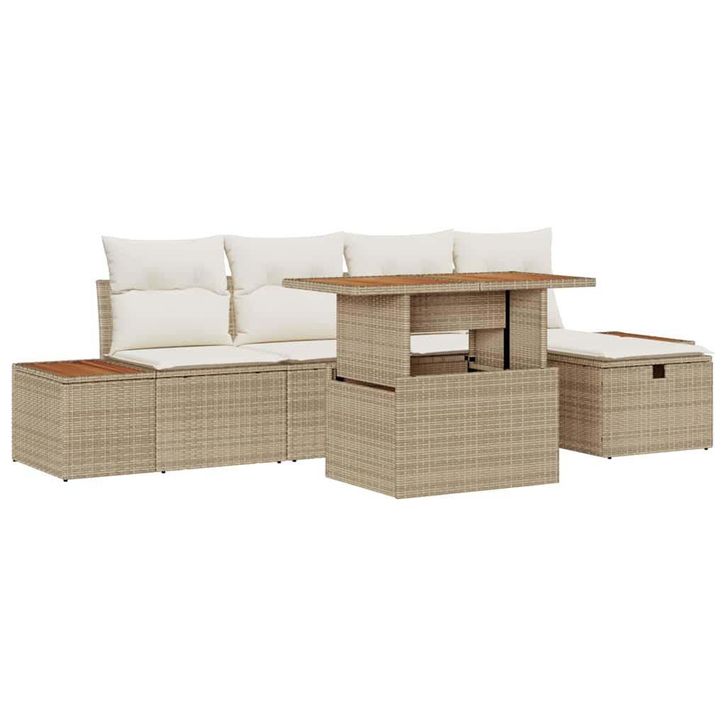 Mach dich bereit, draußen zu chillen mit dem modernen Outdoor-Sitzset. Es ist die perfekte Mischung aus Stil und Komfort, die jeden Garten oder Terrasse aufpeppt. Dieses hübsche Set hat schlanke Linien und ein minimalistisches Design, ideal für jeden Außenbereich. Egal, ob du eine Party schmeißt oder einfach nur einen entspannten Moment für dich hast, dieses Set macht deine Zeit im Freien noch besser. Materialien: Aus Poly-Rattan gefertigt, ist dieses Sitzset dafür gemacht, wetterfest zu sein und dabei gut auszusehen. Das Rattan ist stabil und hält Wasser und UV-Strahlen stand, sodass es lange hält und wenig Pflege braucht. Die massive Akazienholzplatte gibt einen schönen natürlichen Touch, der gut in jede Umgebung passt.Inklusive Komponenten: Das Set kommt mit zwei zentralen Sitzen, die auch Stauraum bieten, zwei geräumigen Sofas mit integriertem Stauraum und einem Fußhocker, der ebenfalls Stauraum hat alles zusammen mit einem stylischen Gartentisch. Jedes Teil ist praktisch und anpassbar, sodass du einen einladenden Platz zum Entspannen oder Feiern hast.Merkmale / Funktion / Design: Das modulare Design gibt dir die Freiheit, das Set so anzuordnen, wie du willst. Die verstellbaren Füße halten es stabil auf unebenem Boden und die strukturierte Oberfläche verleiht jedem Stück einen besonderen Look, der deine Freunde beeindrucken wird.Empfohlene Verwendungen: Ideal für Garten-Terrassen oder Patios, kann dieses Sitzset für alles genutzt werden, vom Entspannen bis hin zu Partys. Das moderne Design macht es perfekt für jede Outdoor-Szene und wertet dein Zuhause ordentlich auf.Pflege & Wartung: Halte es schick, indem du regelmäßig mit einem feuchten Tuch drüberwischst und beim Nichtbenutzen mit einer wasserdichten Abdeckung abdeckst. Ein bisschen Pflege sorgt dafür, dass es lange schön bleibt und du lange Freude daran hast. Farbe: BeigeMaterial: Poly rattanTischBeenden: StrukturiertGesamtabmessungen: 100 x 55 x 73 cm (L x B x H)ModularVerstellbare FüßeIdeal zum Entspannen im FreienSitzplätzeBeenden: StrukturiertSitztiefe: 55 cmSitzplatz: 5ModularVerstellbare FüßeIdeal zum Entspannen im FreienOutdoor-KissenNicht abnehmbarVersammlung erforderlich: JaLieferung:2 x Mittelsitz mit Stauraum, 2 x Sofa mit Stauraum, 1 x Fußhocker mit Stauraum, 1 x GartentischEAN: 8721288402790SKU: 3360076Brand: vidaXL