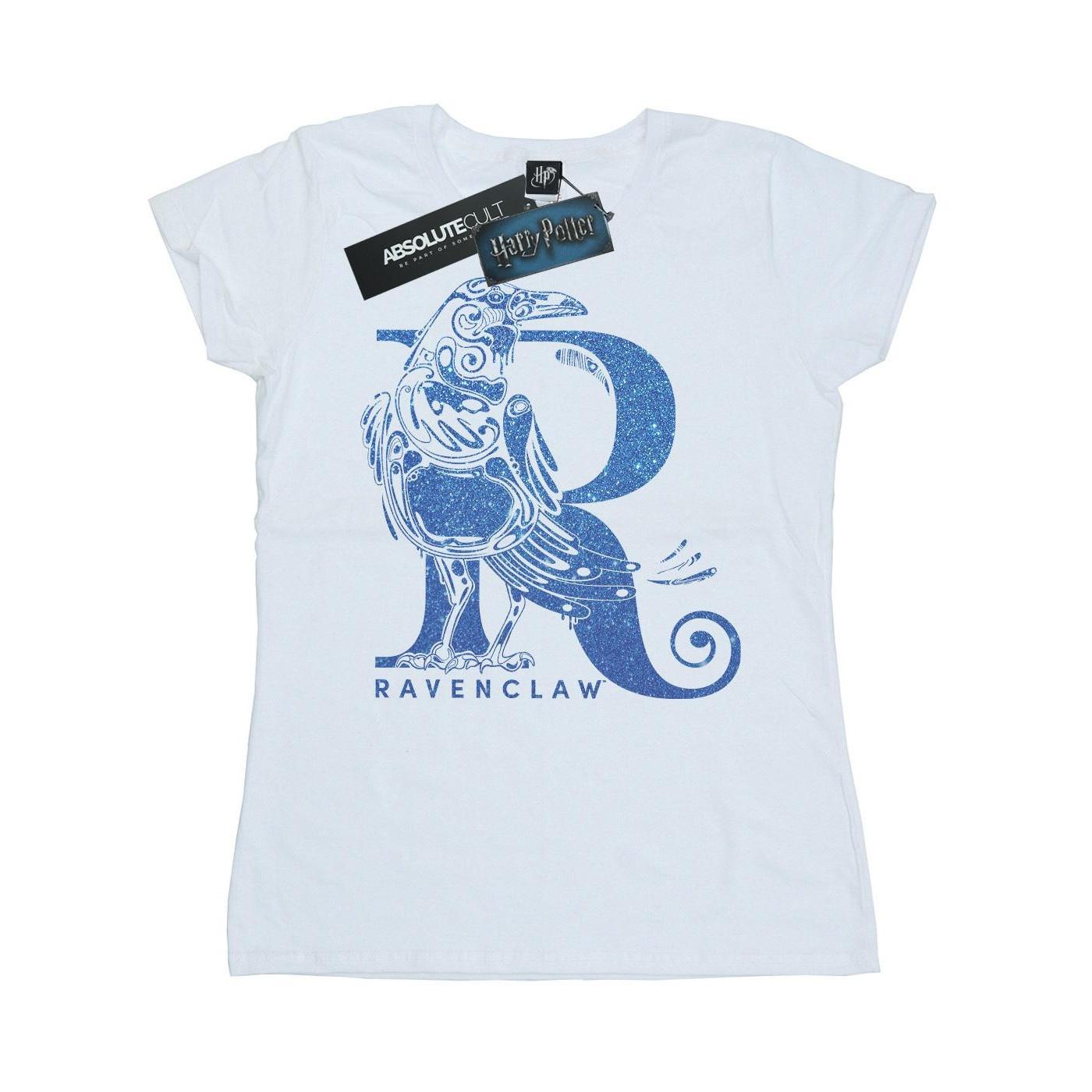 Dieses Ravenclaw T-Shirt zeigt ein auffälliges Design, das den ikonischen Ravenclaw-Raben mit dem Buchstaben 'R' kombiniert, alles in einem glitzernden blauen Finish. Das Design ist prominent auf der Vorderseite des Shirts abgebildet und macht es zu einer perfekten Wahl für Fans der Harry Potter-Reihe und des Hauses Ravenclaw.