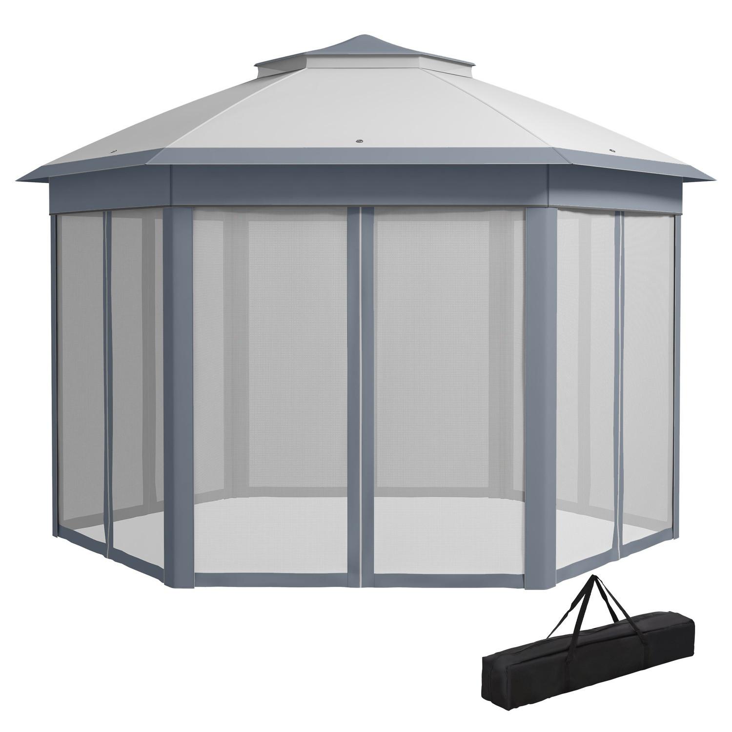 Northio Gartenpavillon Faltpavillon 4 x 4 m Pop-Up-Zelt Partyzelt inkl. Tragetasche 6 Seitenteile Doppeldach sechseckig Grau