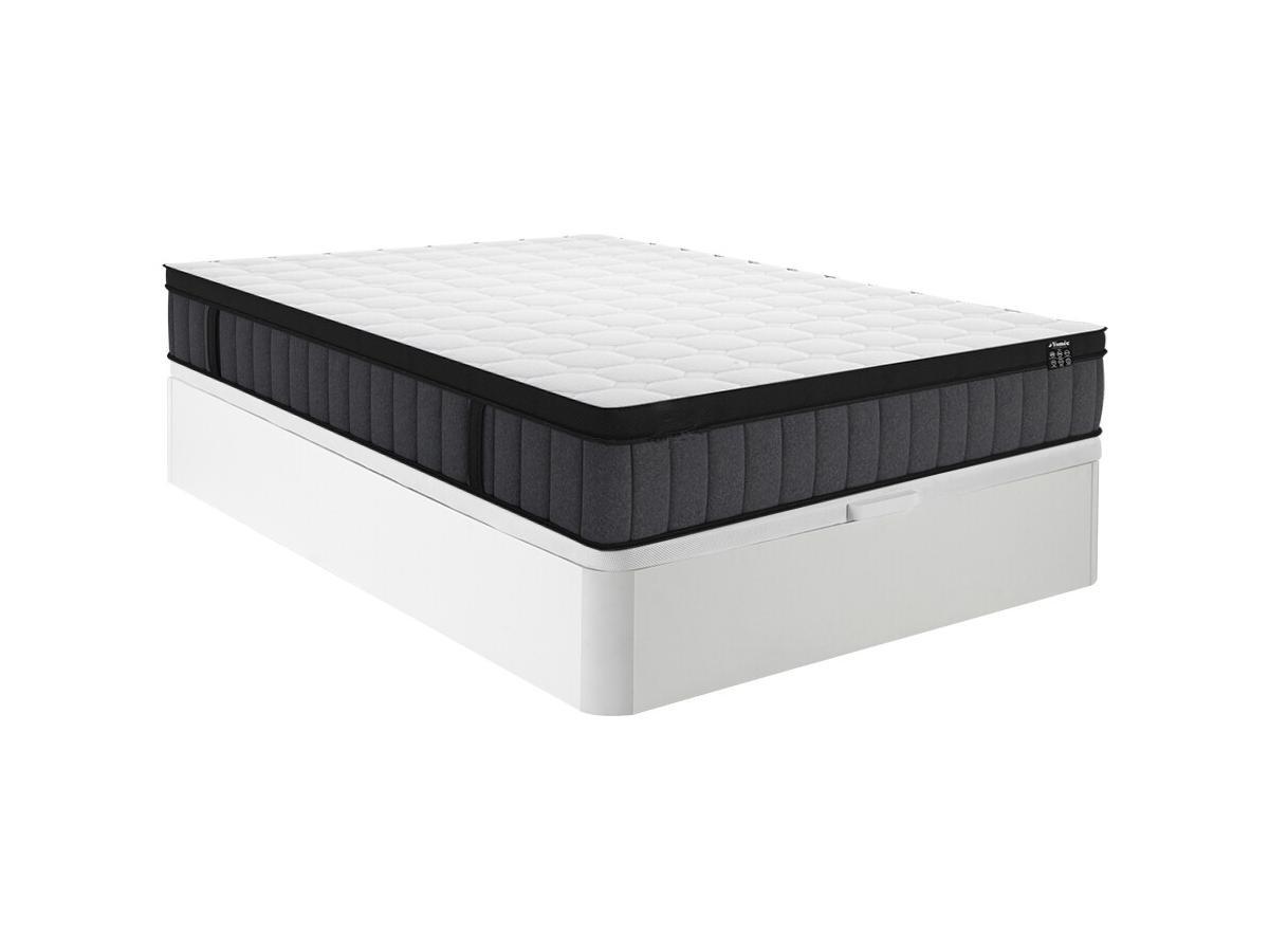 Ysmée Set aus Bettgestell mit Bettkasten + Matratze - 160 x 200 cm - 7-Zonen-Taschenfederkern & Memory Schaum - Stärke 25 cm - Weiß - TOLCA von YSMÉE