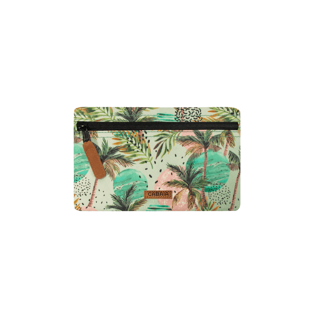 Die GIRALDA Clutch verfügt über eine hübsche Farbpalette, die Grün, Rosa und Braun auf einem hellen Hintergrund enthält und ein einzigartiges und attraktives Design schafft. Das tropische Palmen- und Laubmuster verleiht dieser eleganten Clutch ein exotisches Flair.