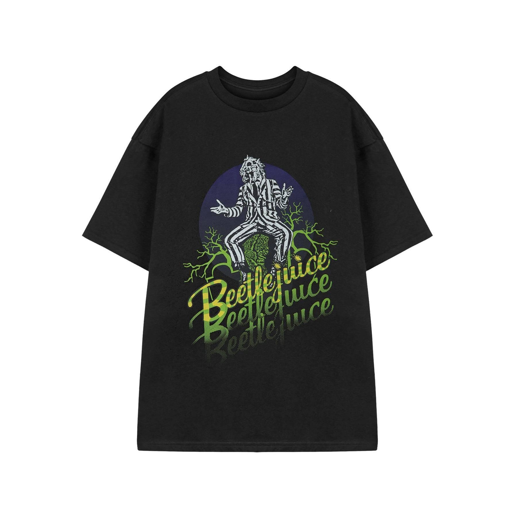 Dieses Unisex Kurzarm-T-Shirt präsentiert einen markanten Beetlejuice Logo-Print mit Farbverlauf auf der Vorderseite und ist somit ein herausragendes Stück für Fans. Der klassische Rundhalsausschnitt und die bequeme Regular Fit Passform sorgen dafür, dass es für den täglichen Gebrauch geeignet ist.