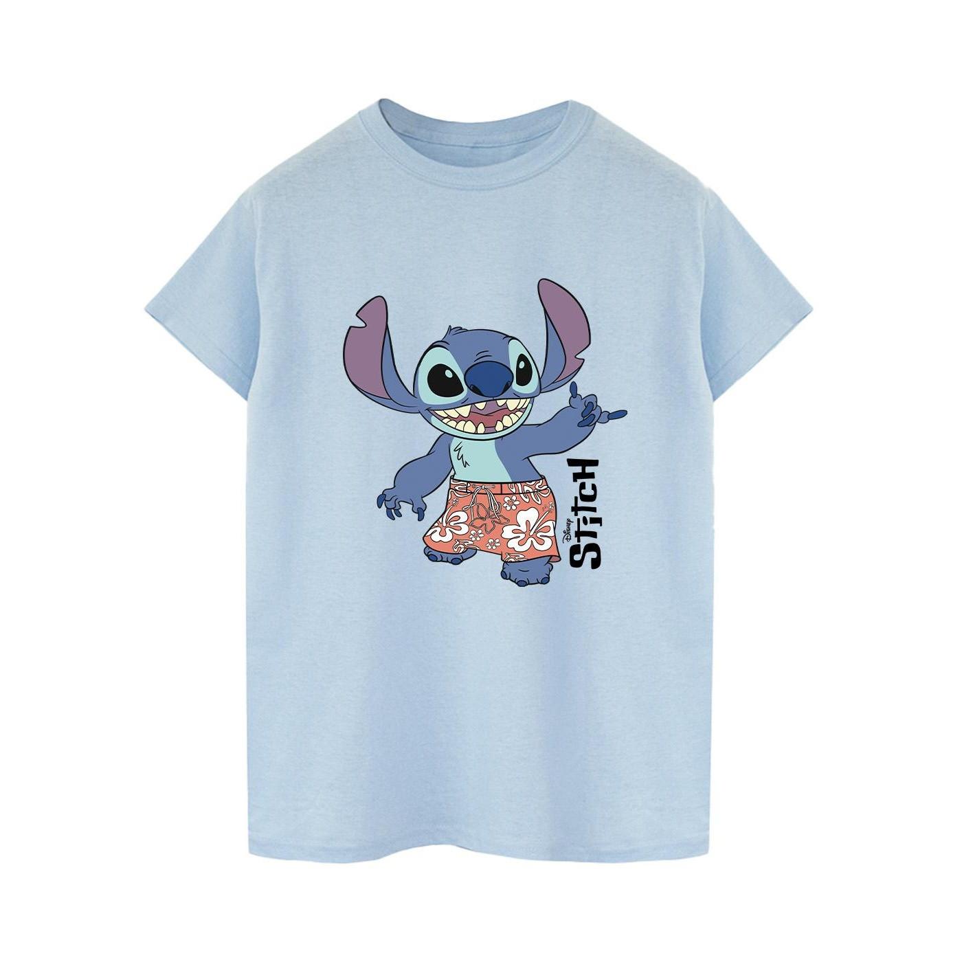 Dieses T-Shirt zeigt eine verspielte Grafik von Stitch aus Disneys Lilo & Stitch, der Bermudashorts trägt. Das Design vermittelt eine lustige und entspannte Atmosphäre und ist eine grossartige Ergänzung für die Freizeitkleidung.