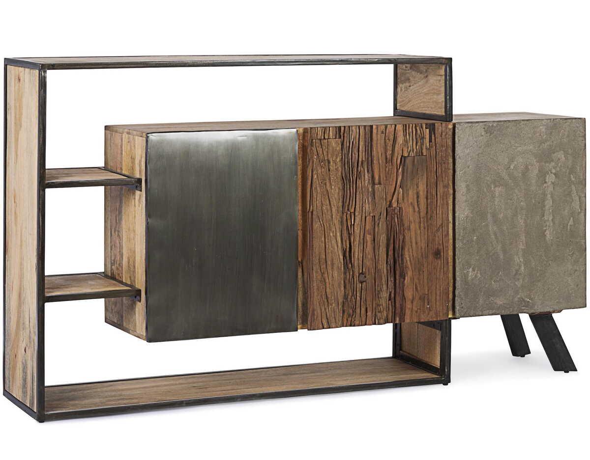 Gestell aus Mangoholz und Stahl. Rückenseite aus Sperrholz. Türfronten und Schubladen aus recyceltem Holz, Stahlfolie oder Zementfaser-Finish. Schützender Acryl-Finish.