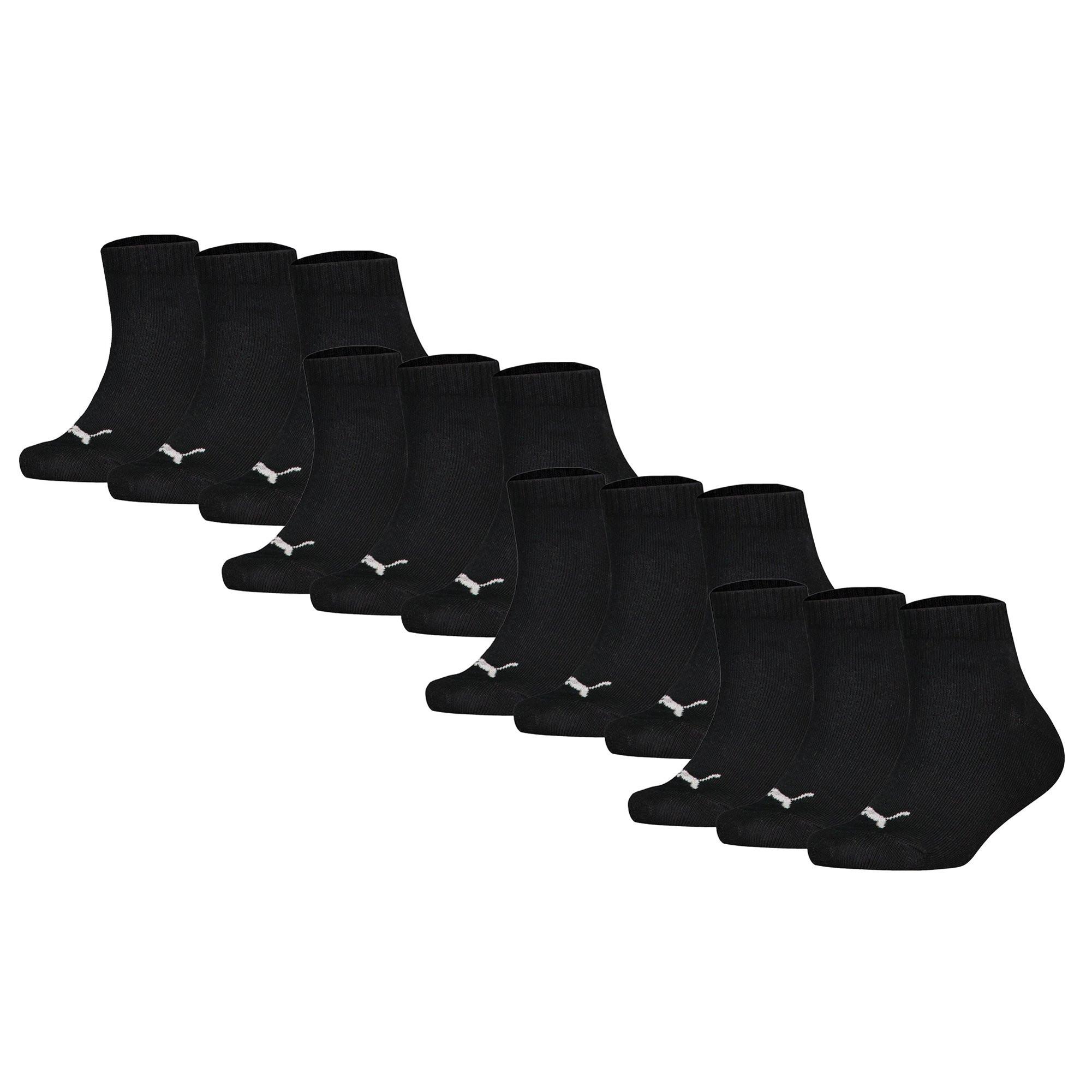 Basic Quartersocken für Kinder von der Marke PUMA. Einfarbige Socken mit markentypischen Logo im praktischen 12er Pack. Flache Zehennaht.