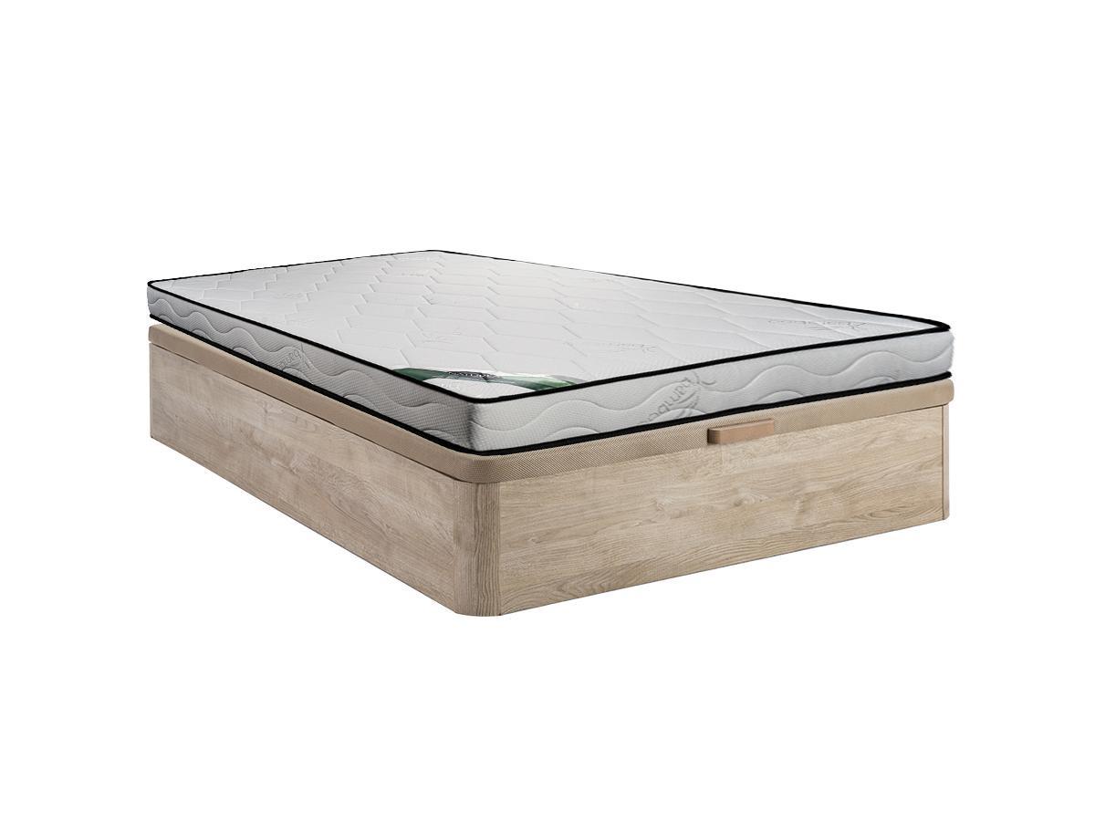 Vente-unique Set aus Bettgestell mit Bettkasten + Schaumstoffmatratze - 140 x 190 cm - Bambusbezug - Stärke 15 cm - Holzfarben hell - KANANI von NATUREA