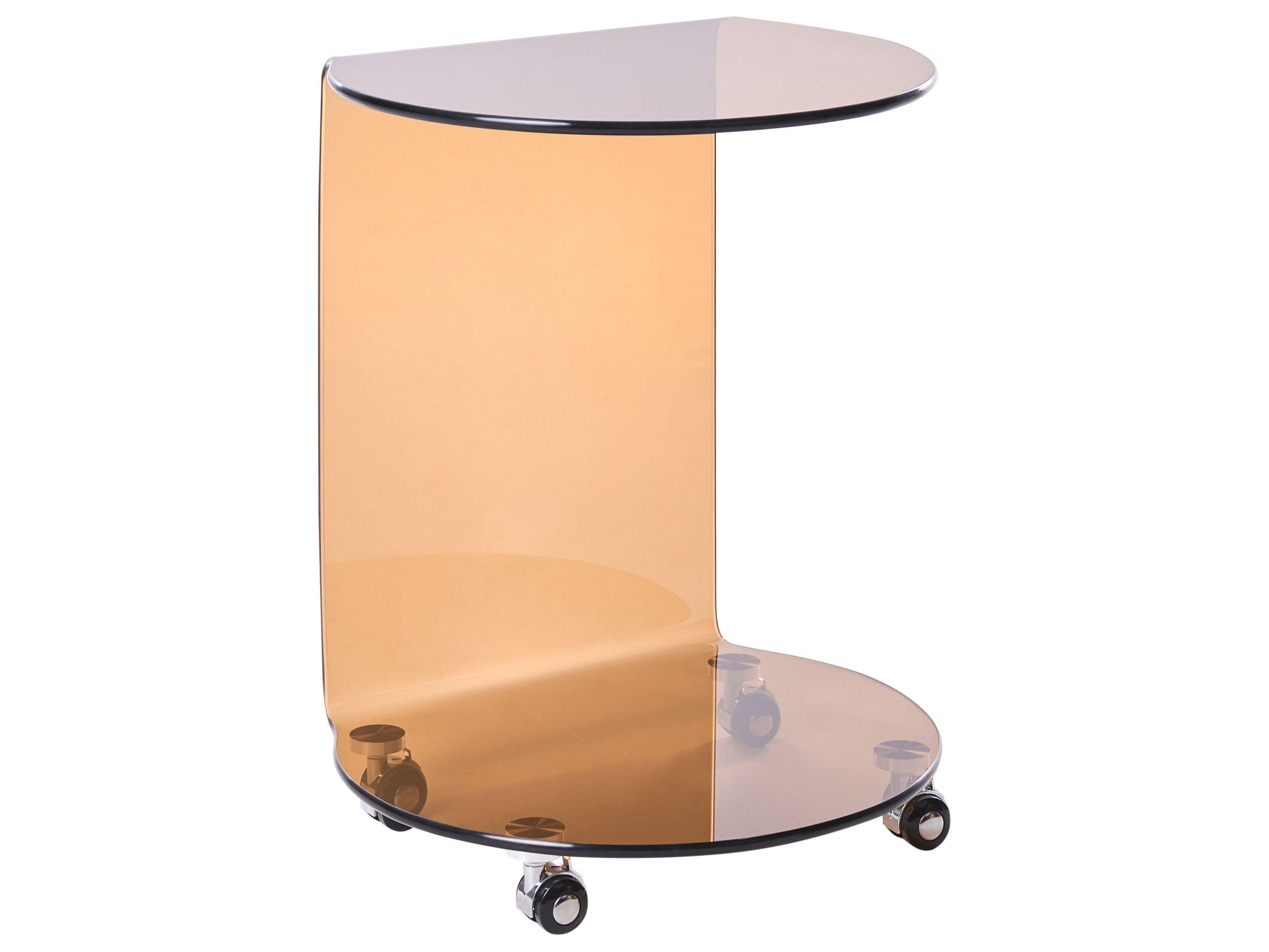 Mobiler C-Form Rauchglas Sofatisch. Dieser minimalistische Beistelltisch ist eine vielseitige Ergänzung für jedes Wohnzimmer. Komplett aus Sicherheitsglas gefertigt, überzeugt er mit einem modernen, leichten Look. Dank der integrierten Rollen lässt er sich mühelos verschieben. Perfekt als Ablage für Snacks, Getränke oder sogar als praktische Laptopfläche.