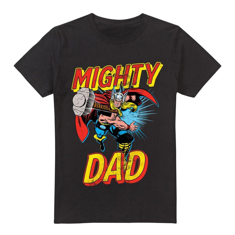 Dieses T-Shirt zeigt einen lebendigen Grafikdruck von Thor, dem mächtigen Avenger, zusammen mit dem Text "MIGHTY DAD". Es ist eine bequeme und stilvolle Wahl für den Alltag, die die Stärke und den Heldenmut von Vätern feiert.