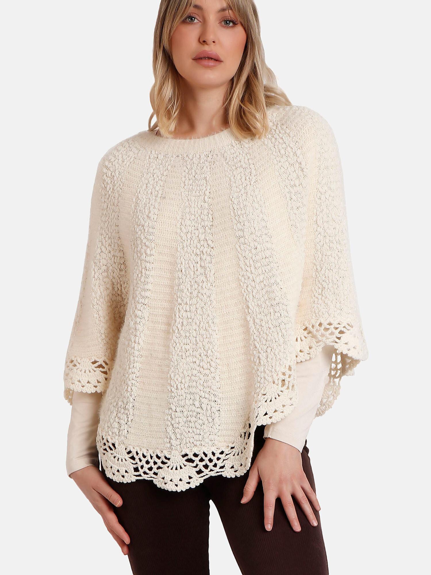 Dieser Admas Romantic unifarbene Poncho ist schnell und einfach anzuziehen und passt perfekt zu allen Outdoor- und Indoor-Outfits, wobei er sofort einen Hauch von Eleganz verleiht. Seine etwas kürzeren Seiten und das zart glitzernde Material veredeln jedes Outfit und verleihen ihm einen romantischen Touch. Die Ränder aus Häkelmaschen unterstreichen den Chic und den Bohemian Style. Dieser Poncho lässt sich mit allen Kleidungsstilen kombinieren. Im Freien hält er an kühlen Tagen warm, drinnen ist er der perfekte Begleiter für gemütliche Abende, zum Flanieren im Haus und zum Schutz vor Kälte. Zu jeder Jahreszeit kann er mit dem Lieblingsrock oder der Lieblingshose getragen werden. Er eignet sich auch für alle Figuren, die er auf elegante und zarte Weise hervorheben wird.