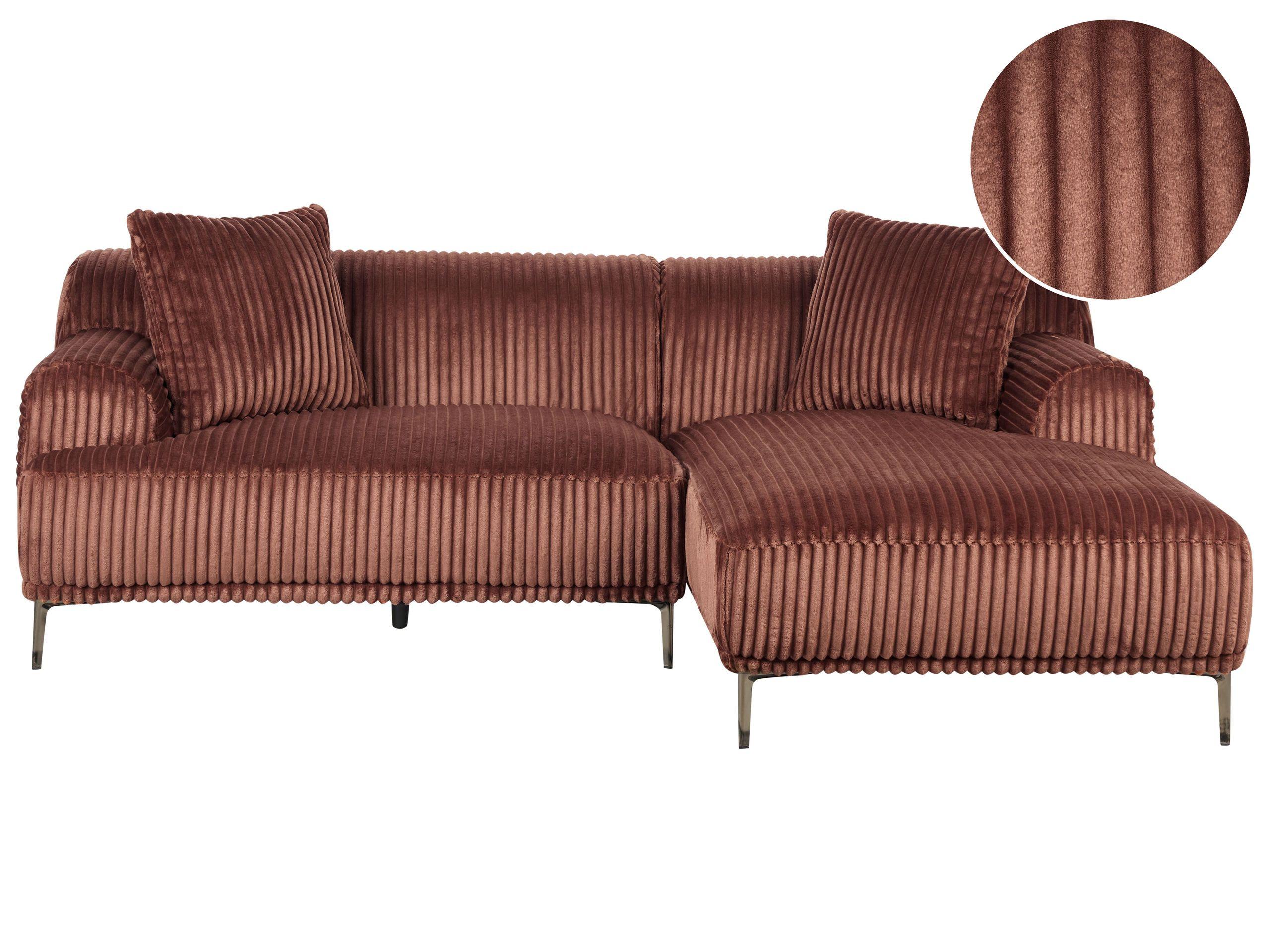 3-Sitzer Ecksofa aus Cord. Bringen Sie Mid-Century-Charme in Ihr Wohnzimmer mit diesem stilvollen Sofa im Cord-Look. Für höchsten Komfort designt, überzeugt es mit einer niedrigen Rückenlehne und breiten Rillen, die dem Stoff Struktur und einen dezenten Glanz verleihen. Das geräumige 3-Sitzer-Sofa steht auf schlanken Metallfüssen, die ihm eine moderne Leichtigkeit verleihen. Eine zeitlose Kombination aus Stil und Funktionalität – perfekt für jedes Zuhause.