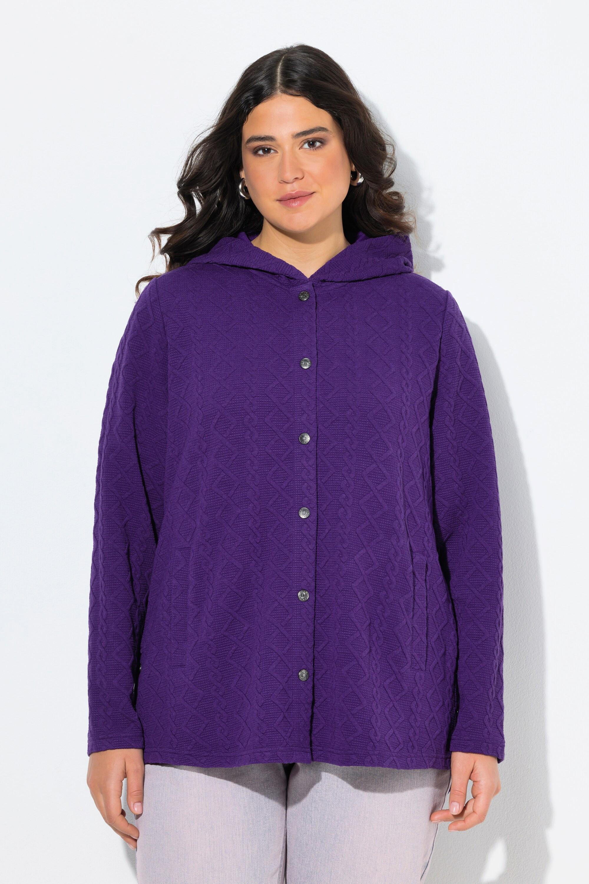 Ulla Popken Hoodie-Jacke Zopfmuster Druckknöpfe Hinten Länger