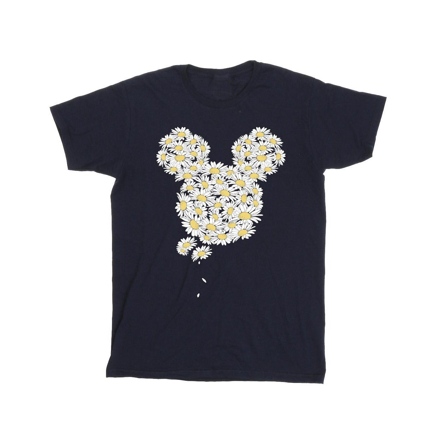 Dieses T-Shirt zeigt eine verspielte Grafik von Mickey Mouse's Kopf, der aus einer Anordnung von Gänseblümchen gebildet wird. Das Design bietet eine frische und charmante Interpretation eines klassischen Charakters und ist eine reizvolle Ergänzung für jede Freizeitgarderobe.