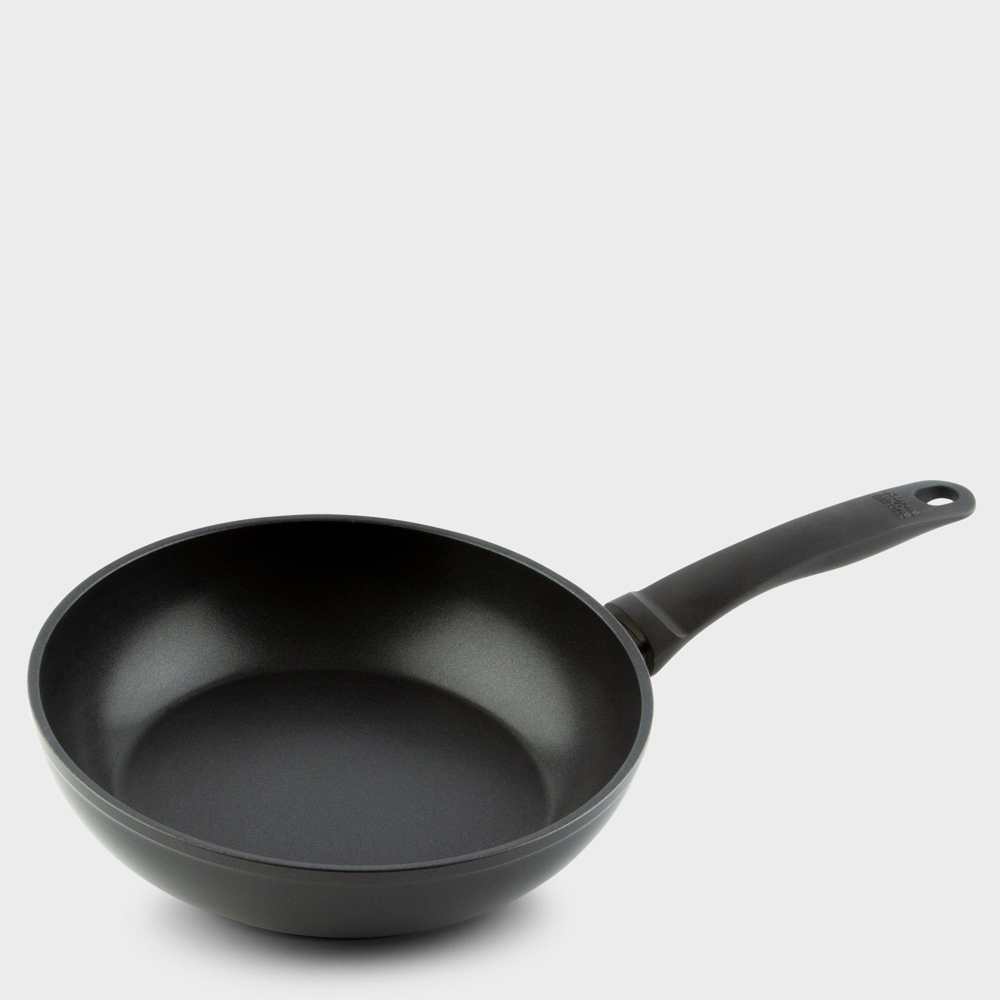 Die Aluminium-Bratpfanne ist mit einer dreifachen Antihaftbeschichtung, mit Titanpartikeln für aussergewöhnliche Haltbarkeit ausgestattet. Induction, Elektrik, Gas und Ceranplatten bis maximal 150 Grad geeignet. Ein schonendes Anbraten ist damit garantiert.