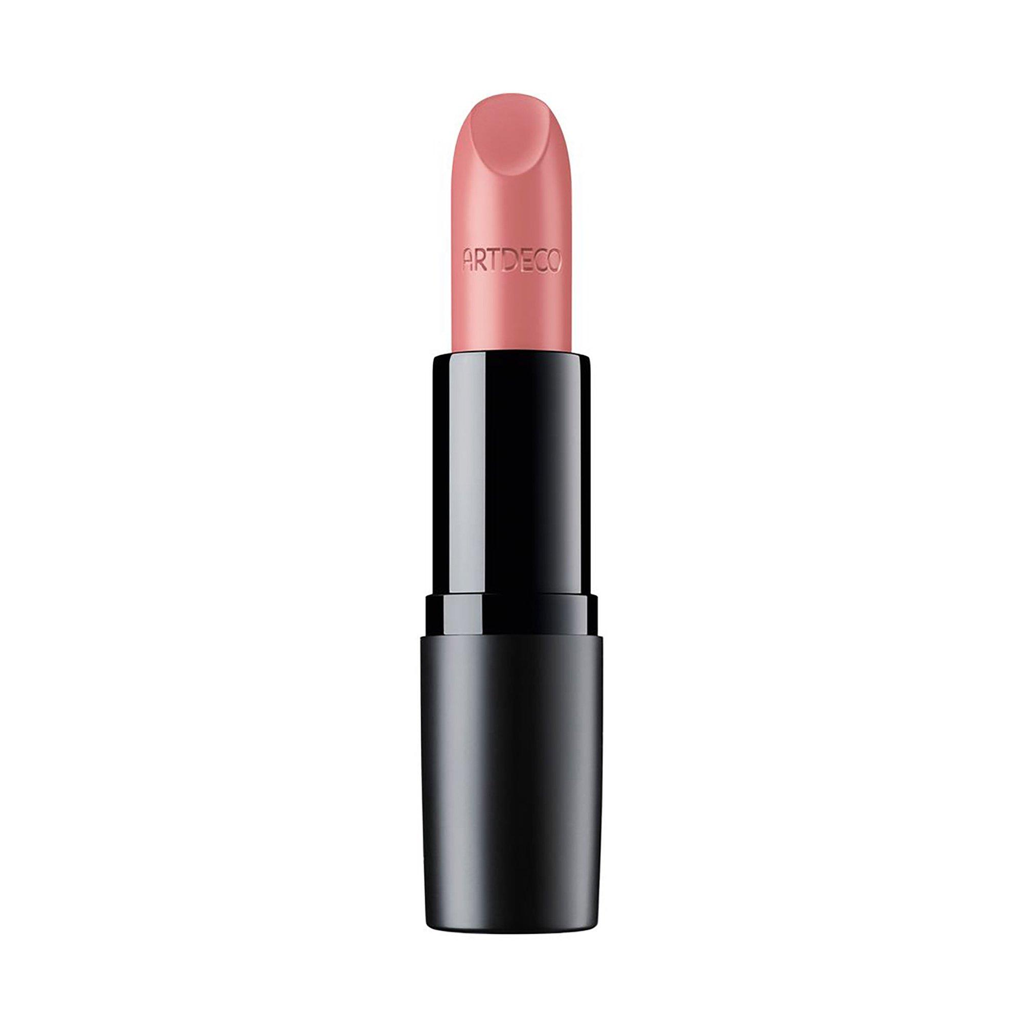 Mattes Finish und satte Farbe treffen auf optimales Tragegefühl – Der Perfect Mat Lipstick von Artdeco ist der ultimative Lippenstift für Kussmünder in Matt. Gleichmässig und intensiv zaubert der Perfect Mat Lipstick matte Farbe auf die Lippen. Dadurch erscheinen die Lippen unglaublich ebenmässig und zart. Dank der long-lasting Textur begeistert der Perfect Mat Lipstick mit einer extra langen Haltbarkeit ohne zu verblassen. Er duftet zart nach Vanille. Der Lippenstift trocknet die Lippen nicht aus. Für ein cremiges, weiches Hautgefühl und allerbesten Tragekomfort.