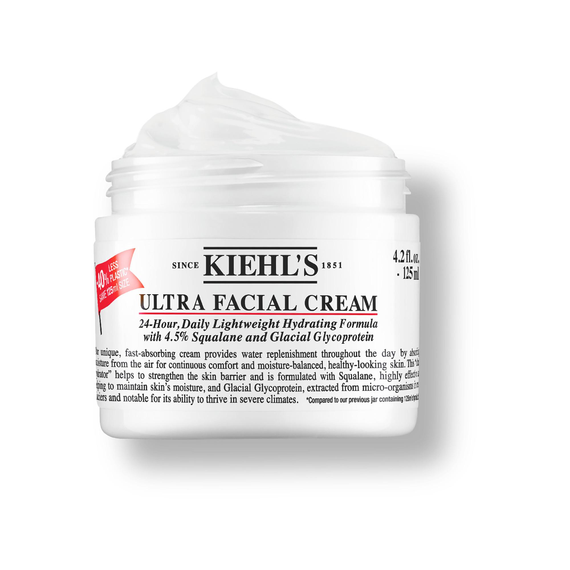 KIEHL'S ULTRA FACIAL CREAM: eine cremige, leichte Gesichtscreme mit glazialem Glykoprotein und Squalan aus Oliven, die 24h langanhaltende Feuchtigkeit spendet.