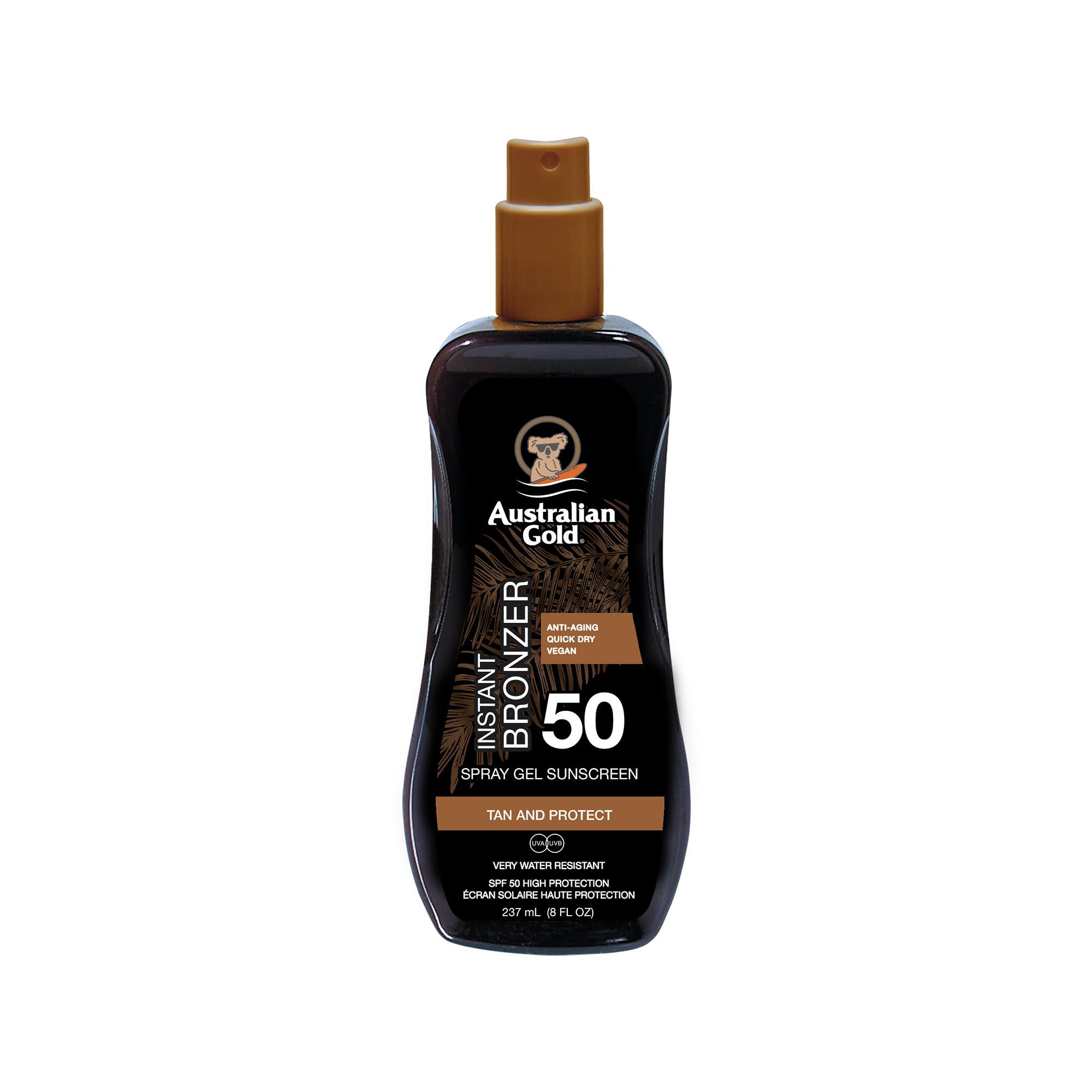 Australian Gold, Bronzer Gel Spray SPF 50, Spray Gel mit Bronzer LSF 50